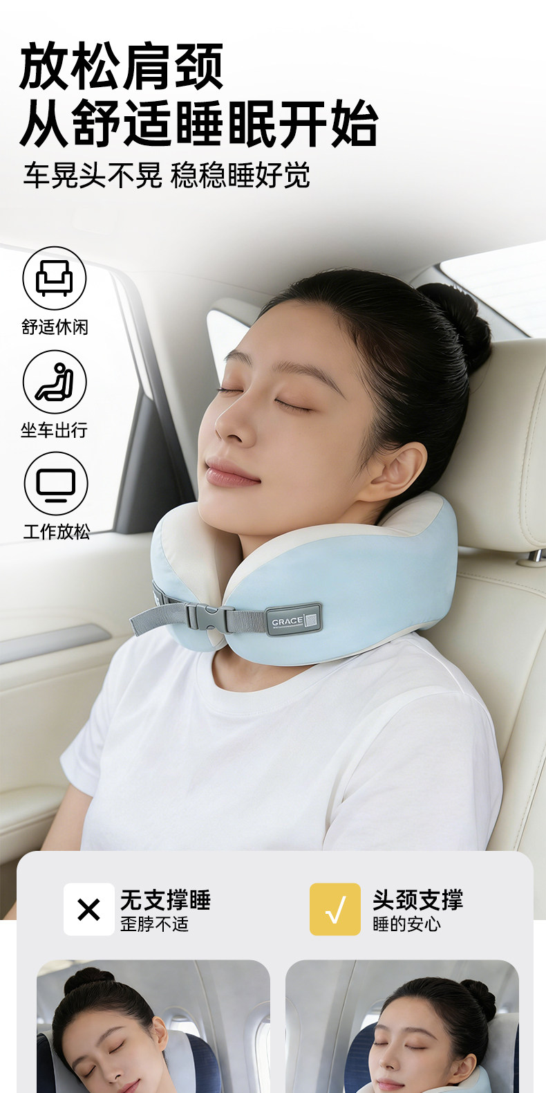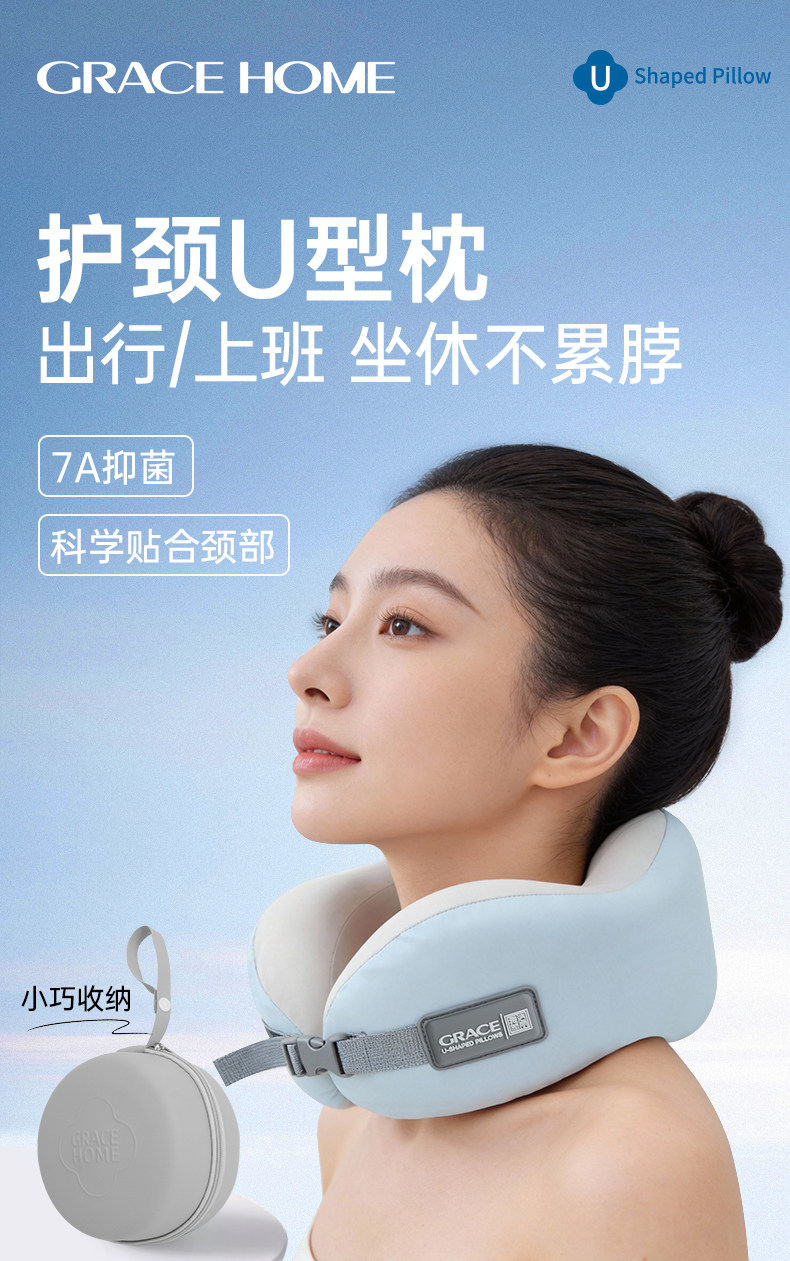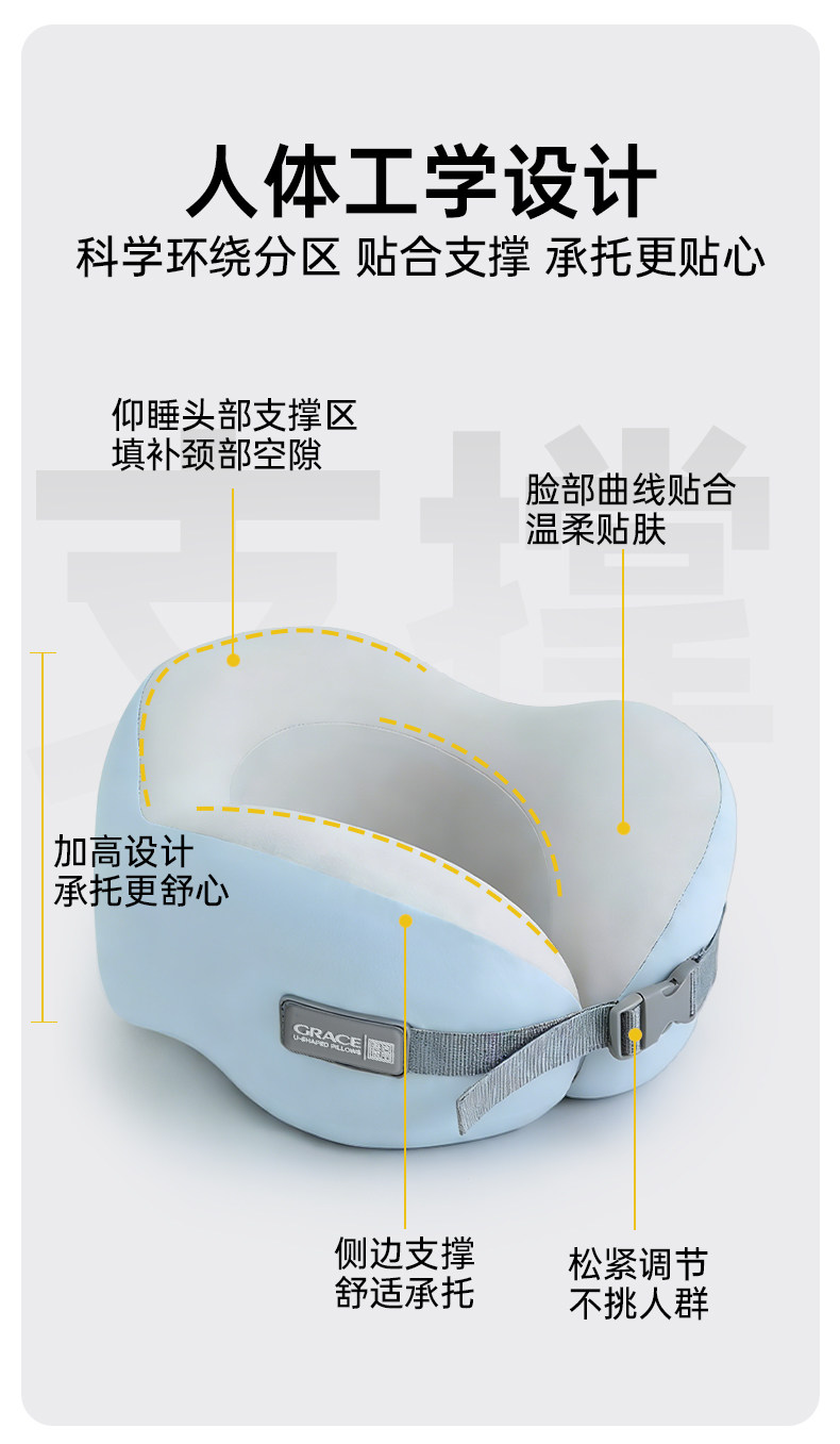 洁丽雅护颈枕记忆棉u型枕旅行护颈椎枕飞机睡觉枕头脖子靠枕可携