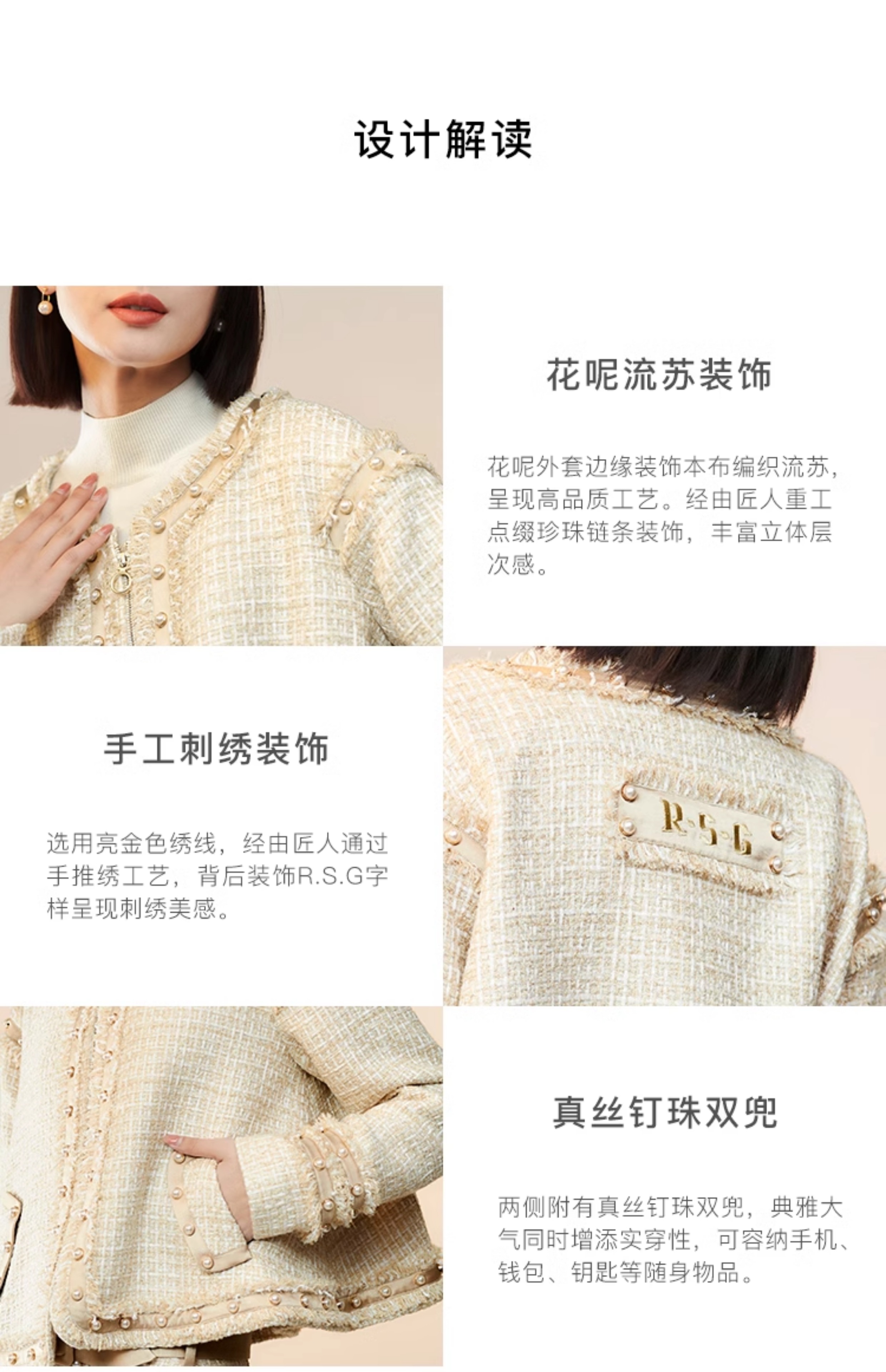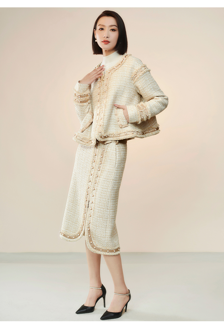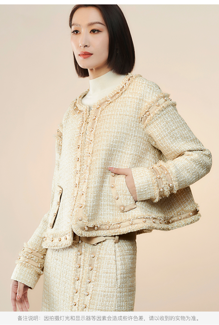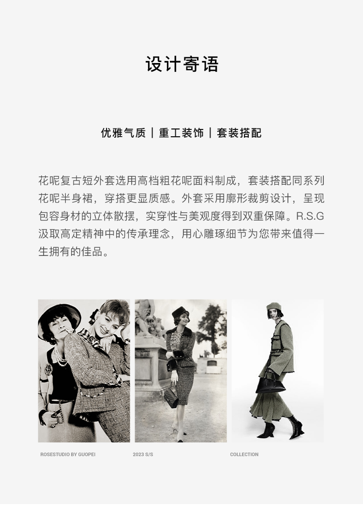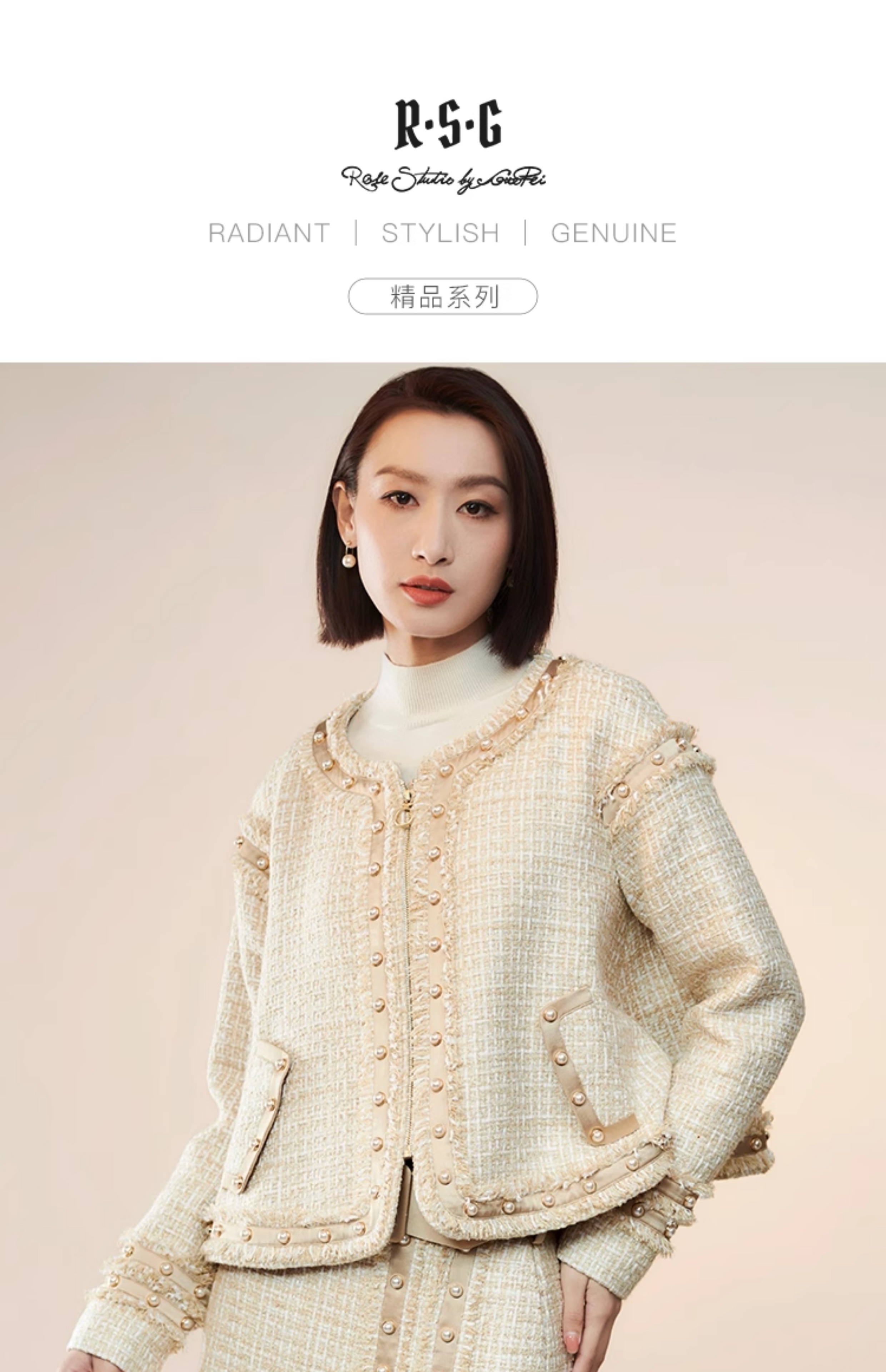 RSG郭培成衣品牌原创设计粗花呢钉珠套装短外套半身裙套装