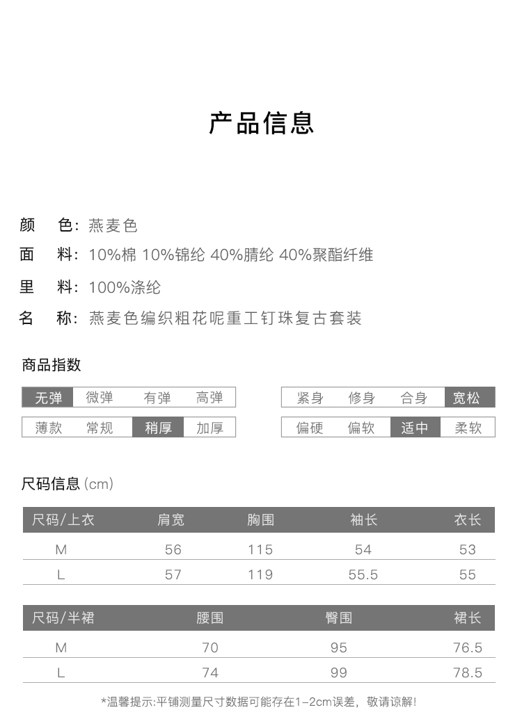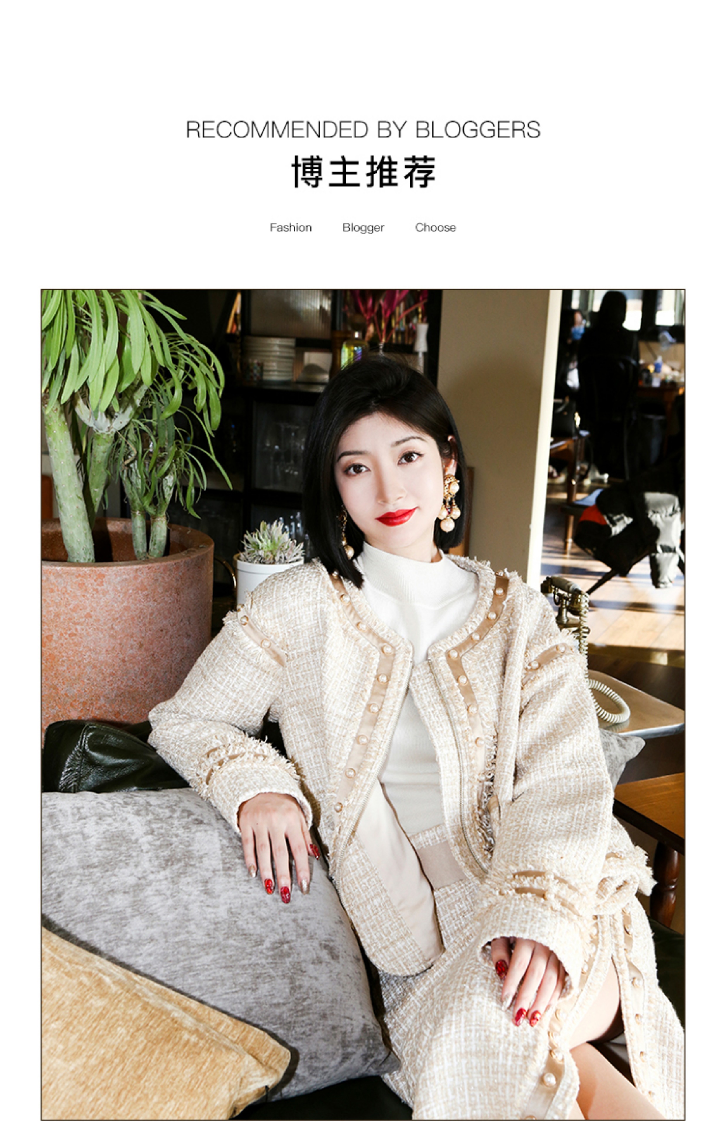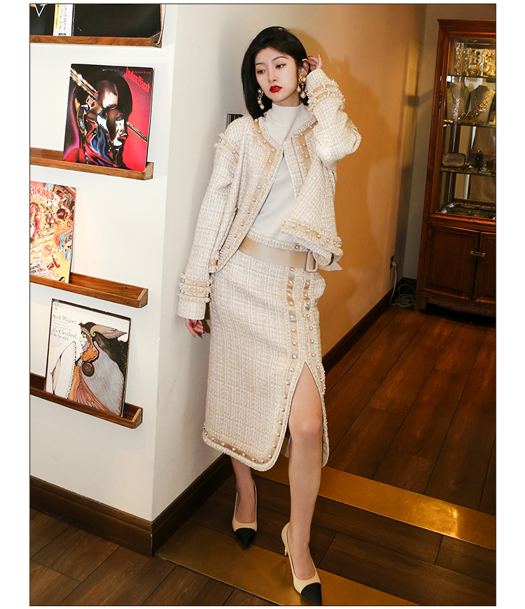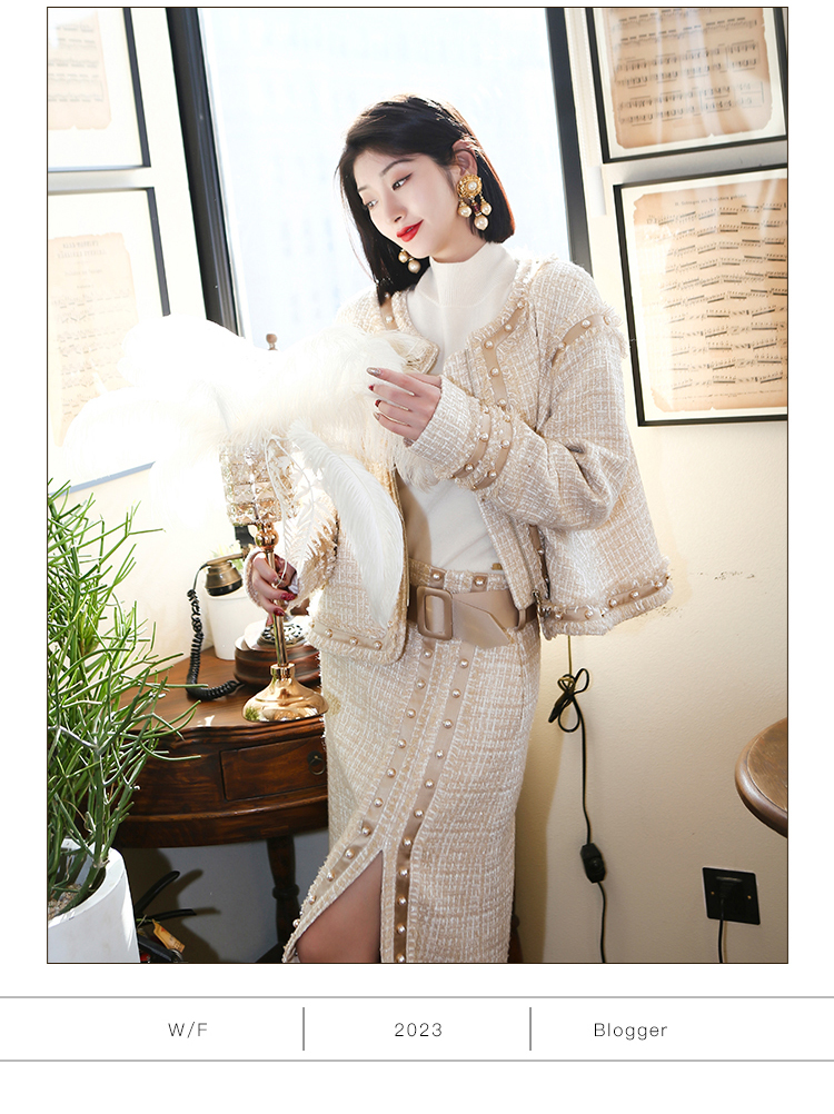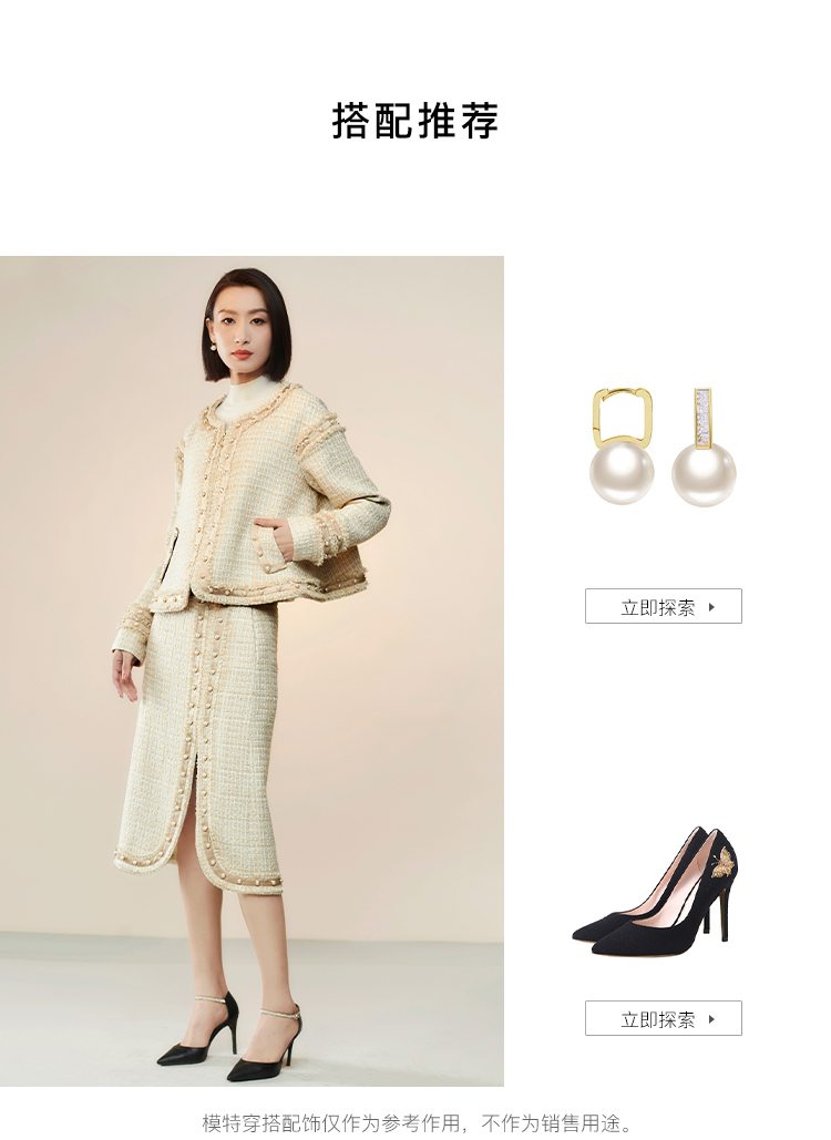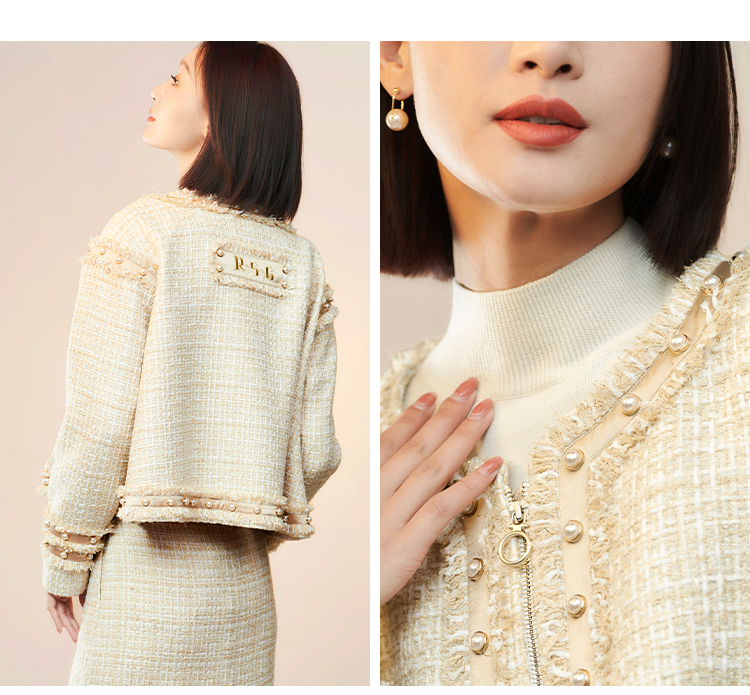 RSG郭培成衣品牌原创设计粗花呢钉珠套装短外套半身裙套装