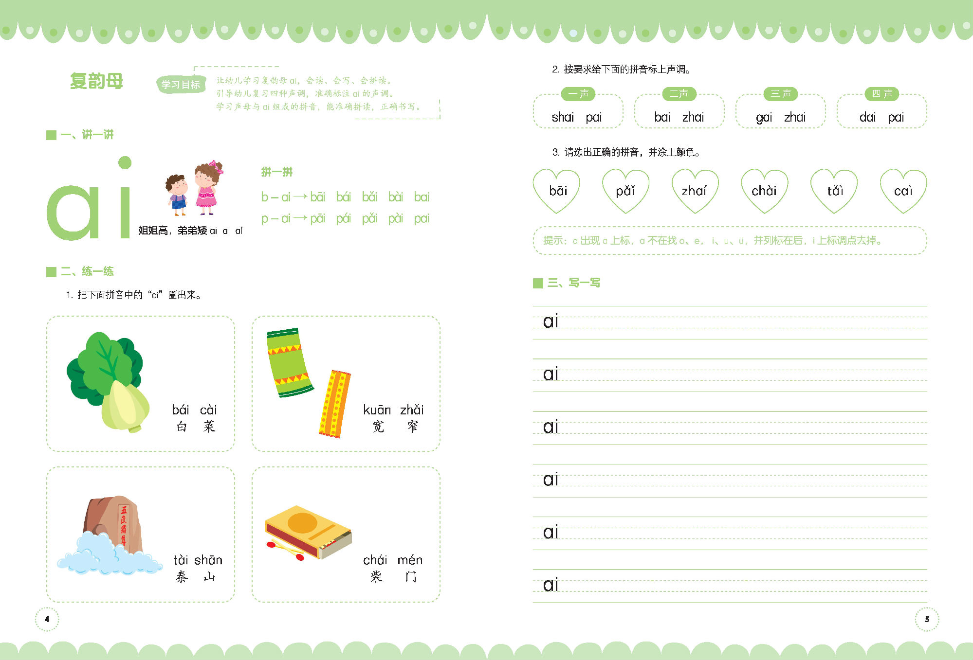 《幼小衔接入学方案·拼音》共3册,包括第一阶段、第二阶段、第三阶段。内容由浅入深,由易到难,从声母、韵母、拼读、书写等各个方面进行拼音训练,储备入学前必备的拼音知识。