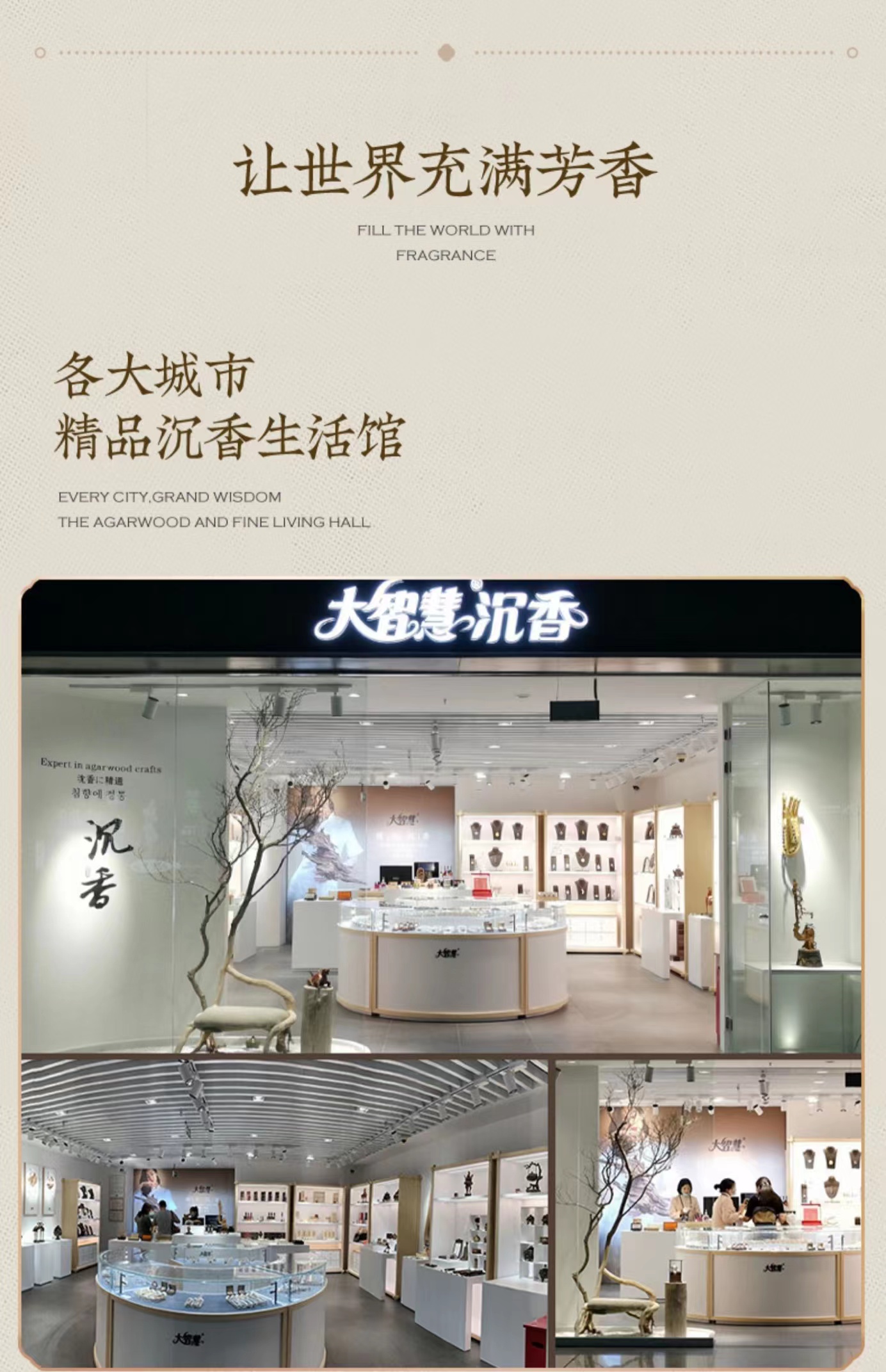 - 以沉香为媒,大智慧沉香述说中国人香事生活中的美与智慧。 将沉香与生俱来的雅与趣、净美的生活禅意, 融入现代人的生活场景。