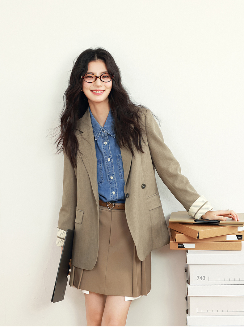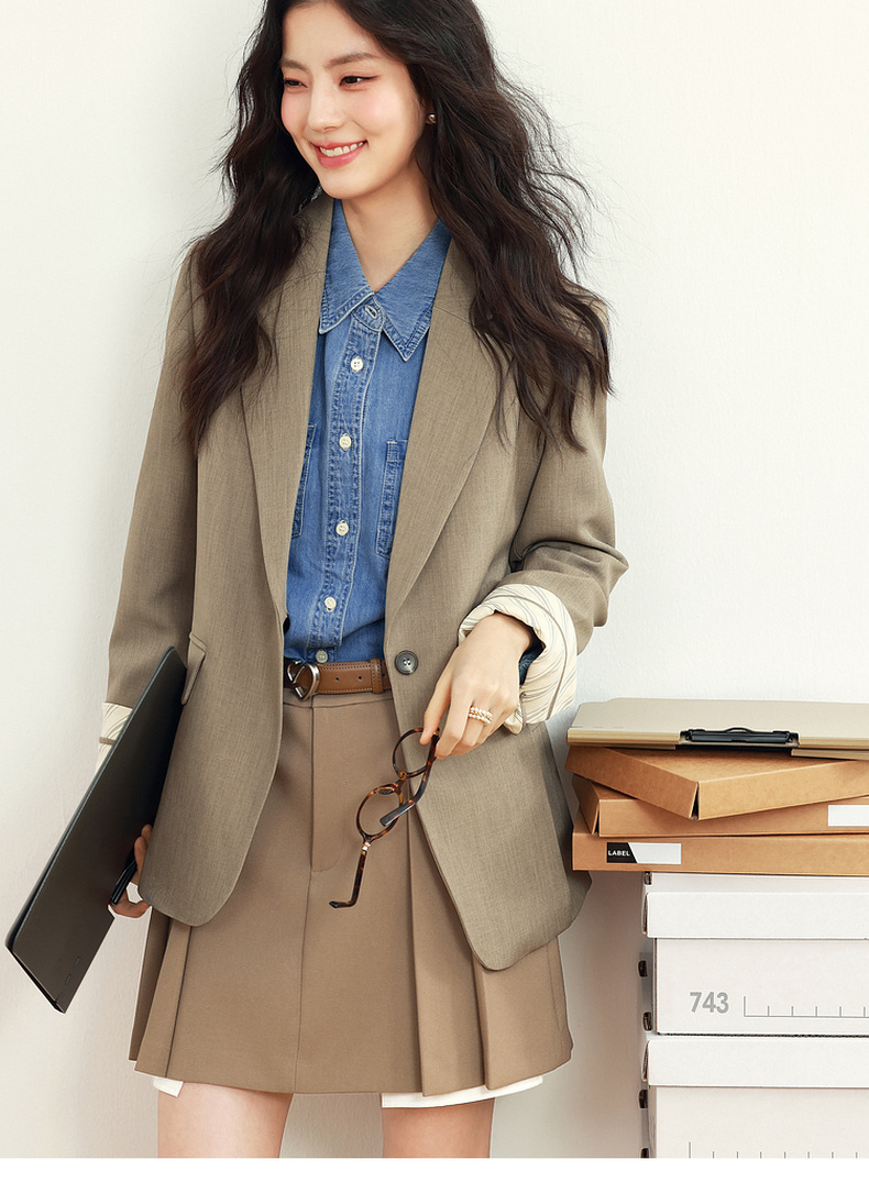 【严选】诗凡黎高级感西装外套2025年春新款轻职场设计通勤气质短款西服7G2210031