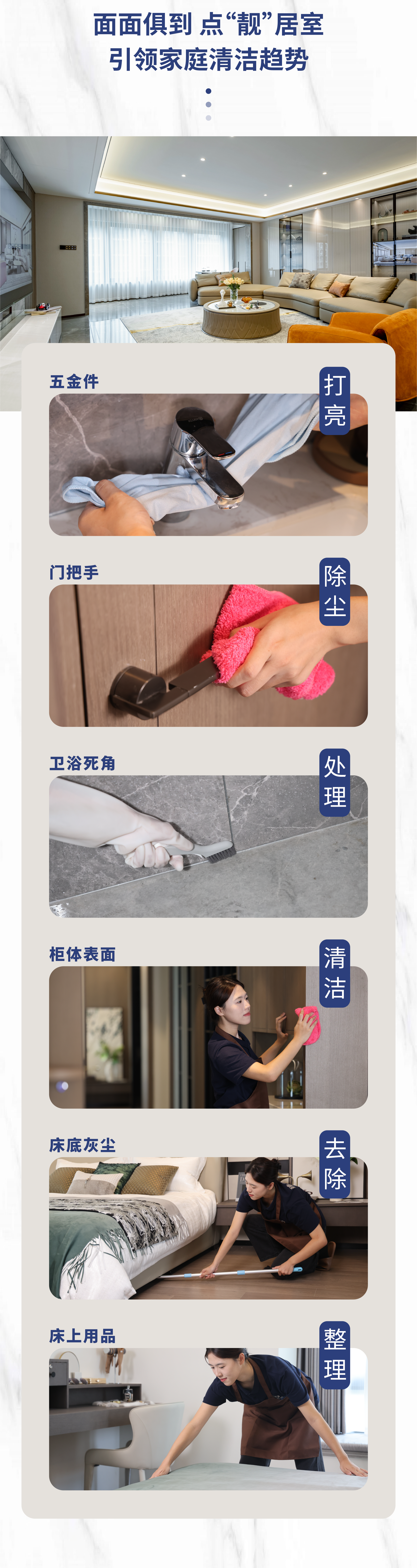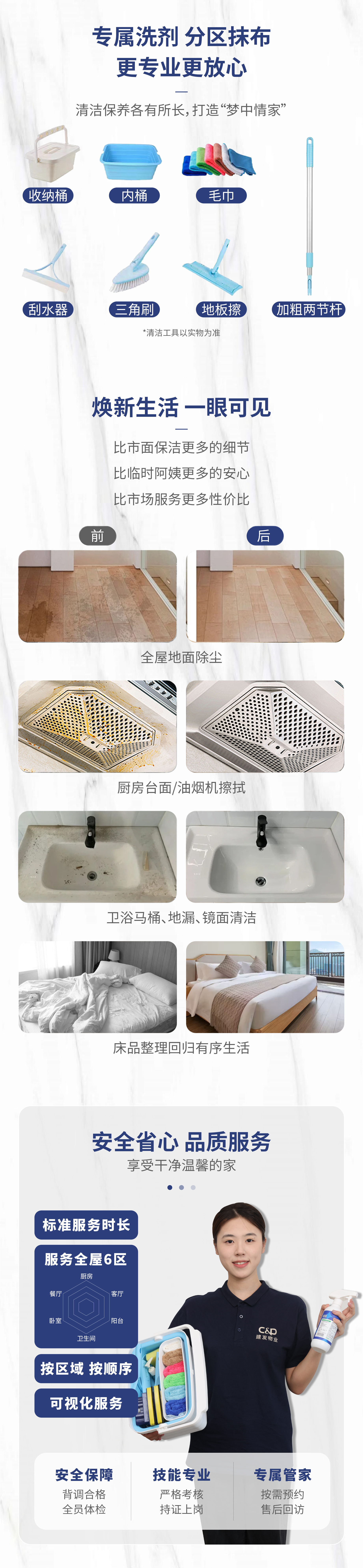 10区保洁按家庭实际情况进行分区保洁——卧室、厨房、卫生间、客厅、餐厅、书房、儿童房、衣帽间、入户区、阳台