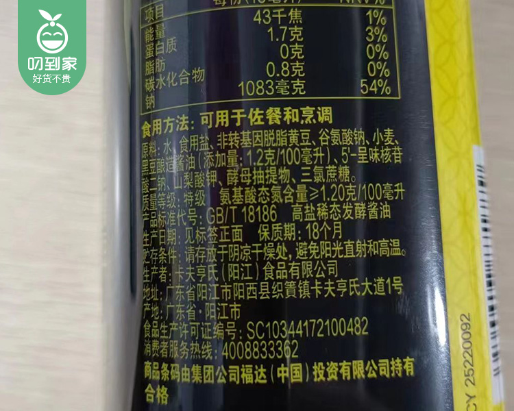 味事达味极鲜黑豆纯酿*2瓶(760ml/瓶)生产日期: 8月