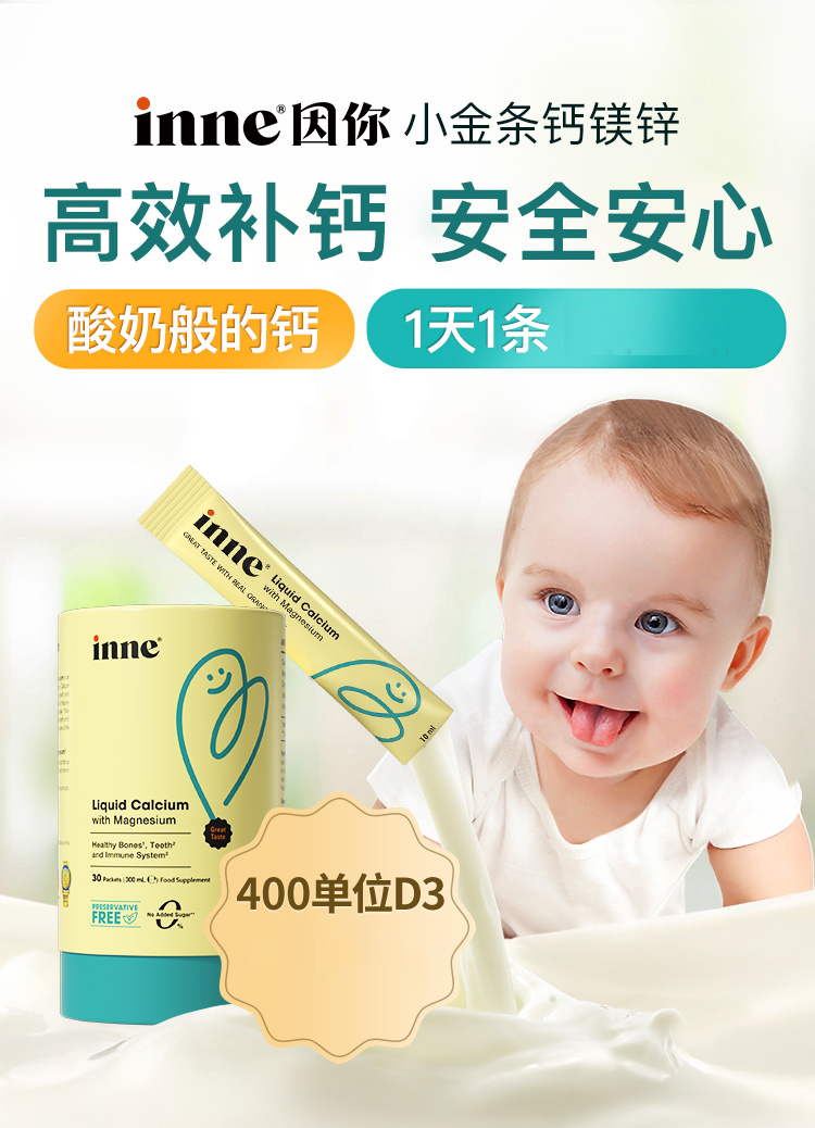 【跨境商品】 升级版inne因你小金条钙镁锌儿童液体钙婴幼儿宝宝补钙d3婴儿钙K2 (不支持7天无理由,介意慎拍!)