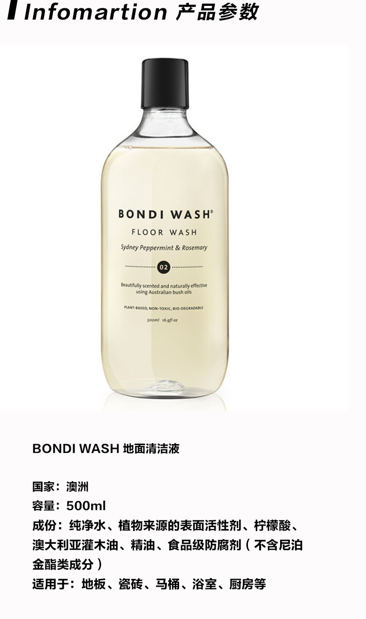 地板清洁液 | 澳大利亚Bondi wash 地面清洁液 纯植物成分 孕妇婴儿 精油芬芳 家居地板清洁液 500ml
