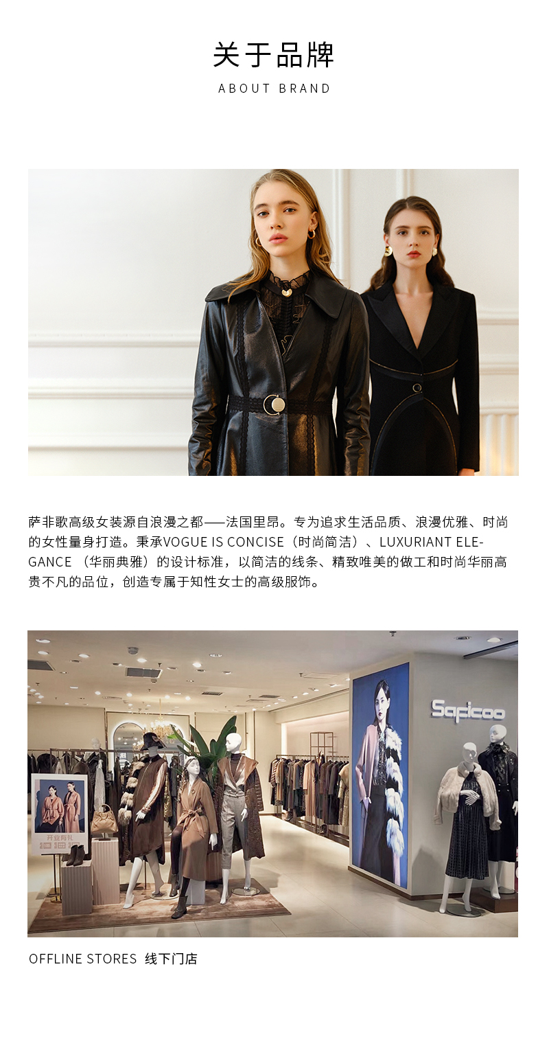 SAFICOO高级女装源自法国巴黎,专为追求品质生活、浪漫优雅的时尚女性量身打造。秉承时尚简洁、华丽典雅的设计标准,以简洁的线条、精精致唯美的做工和时尚华丽、高贵不凡的品位,创造专属知性女士的高级服饰