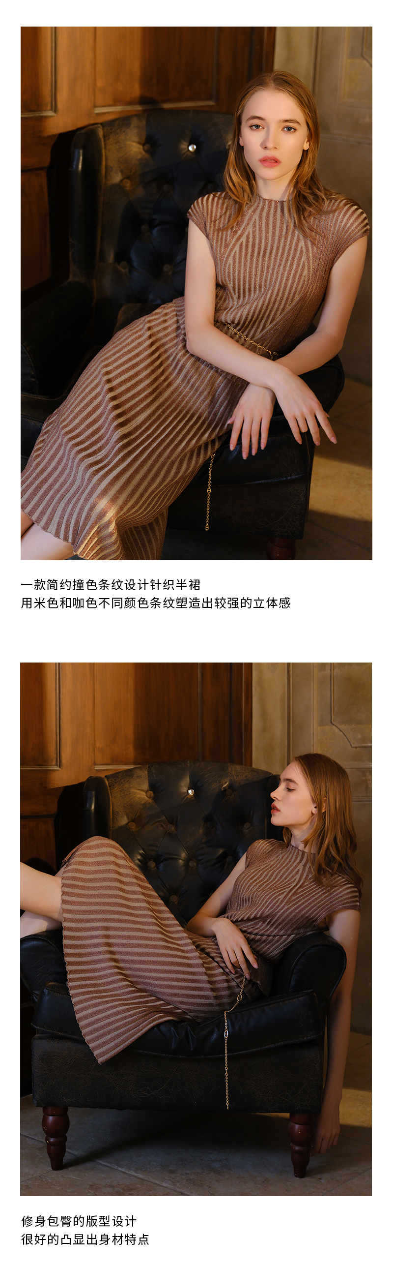SAFICOO【镜与境】系列 立体视觉 撞色条纹针织半裙
