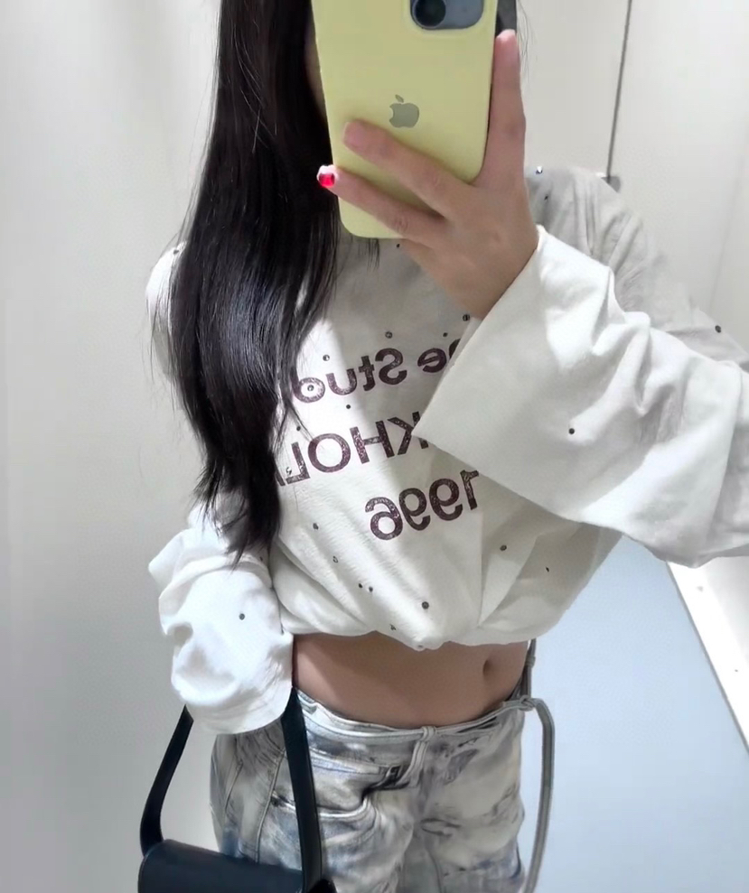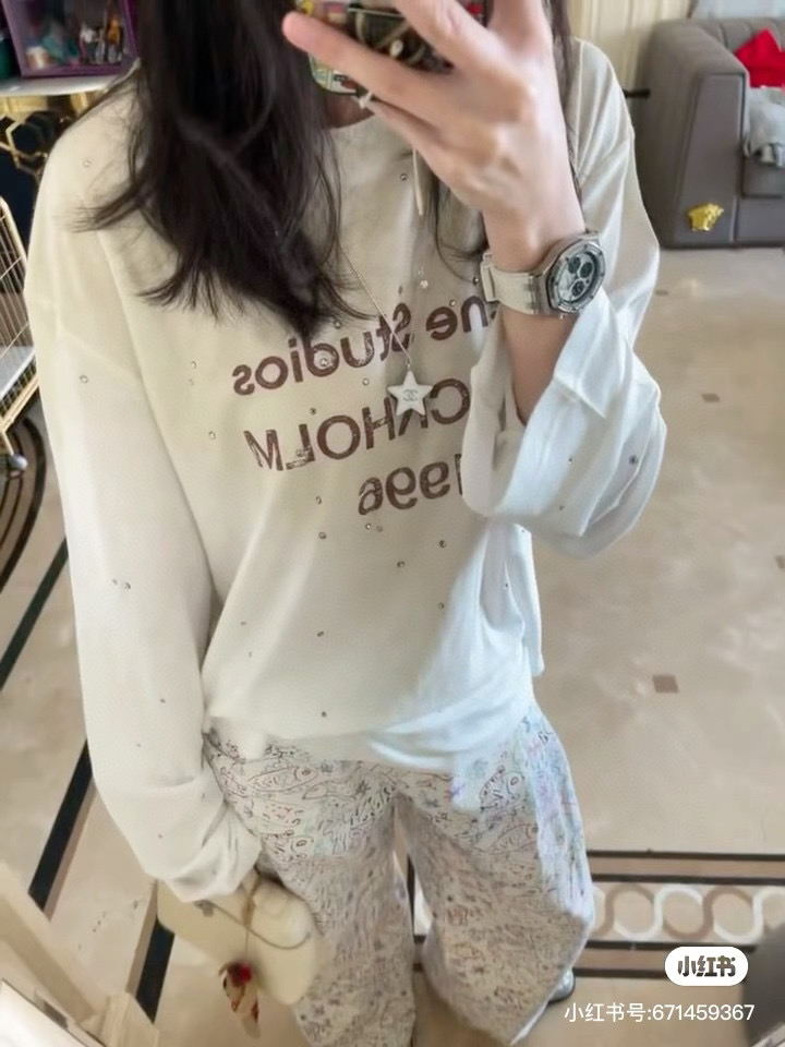 感手跟支数都到位,炒色黄发的效果很酷,就是领口这种洗不掉的茶色,印花烫钻时髦帅气[爱心][爱心][爱心]