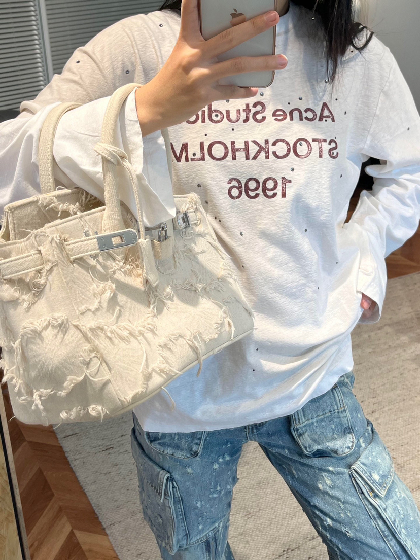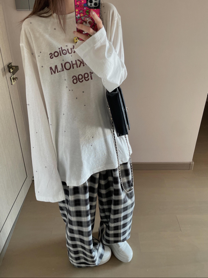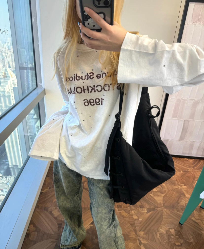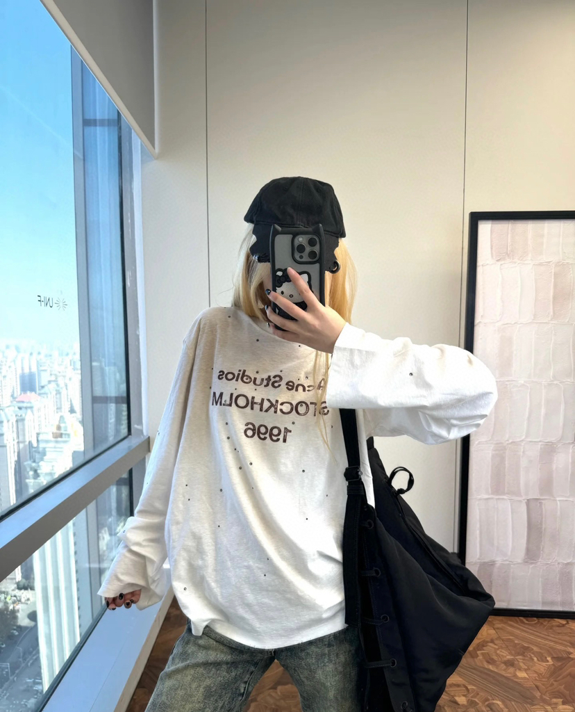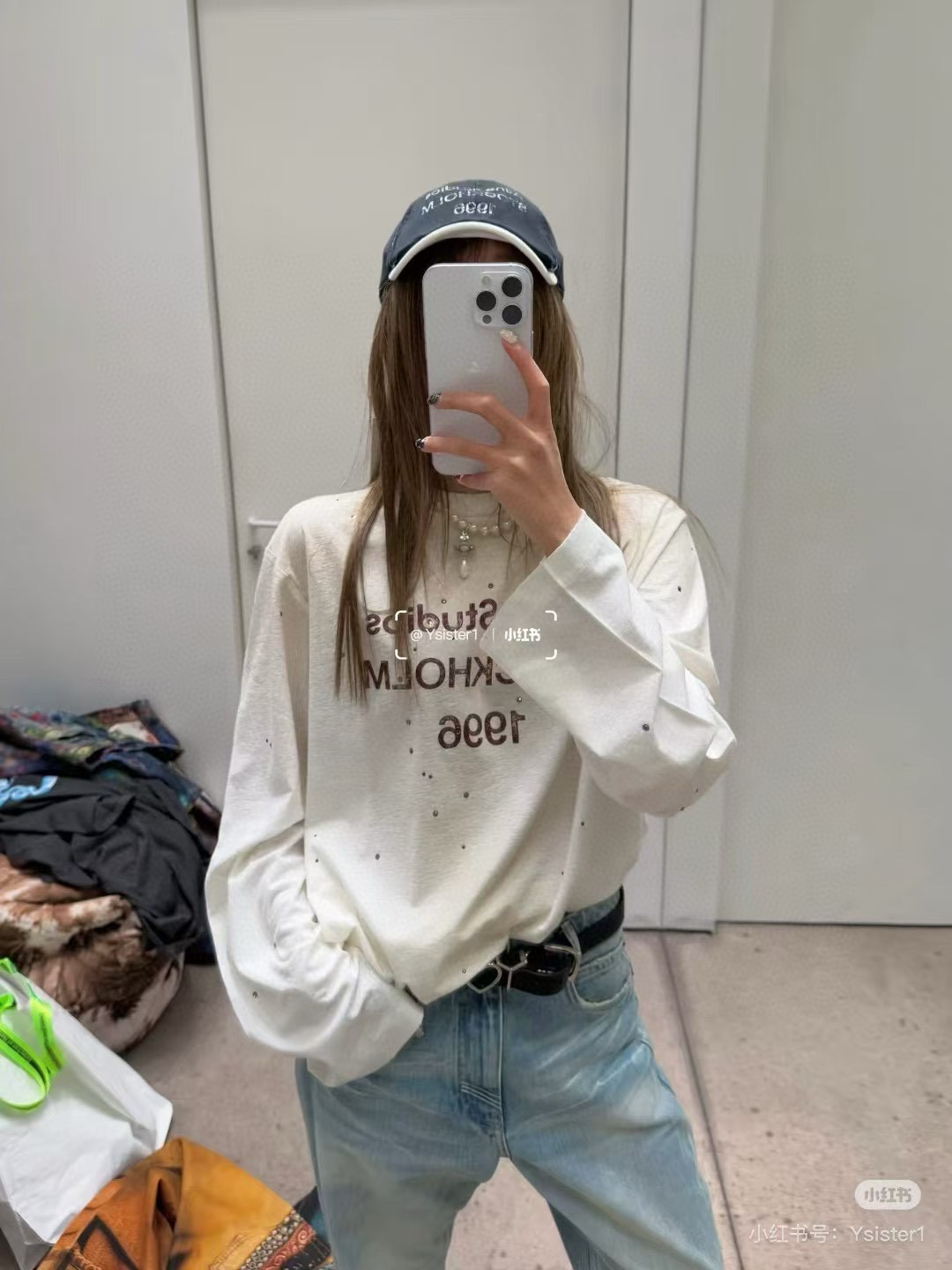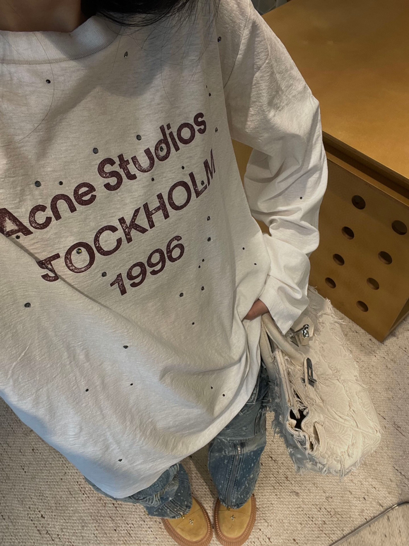 42-4 颓废华丽时髦去油腻 AC 25SS 茶染做旧烫钻 圆领超长袖 宽松T恤