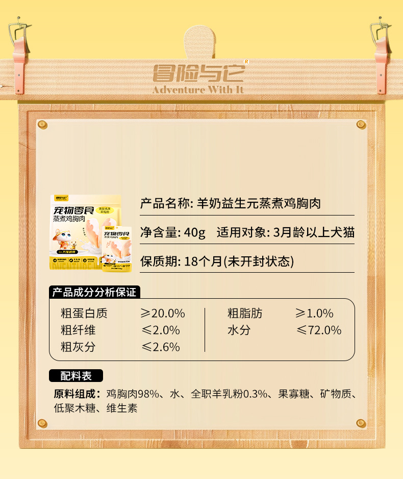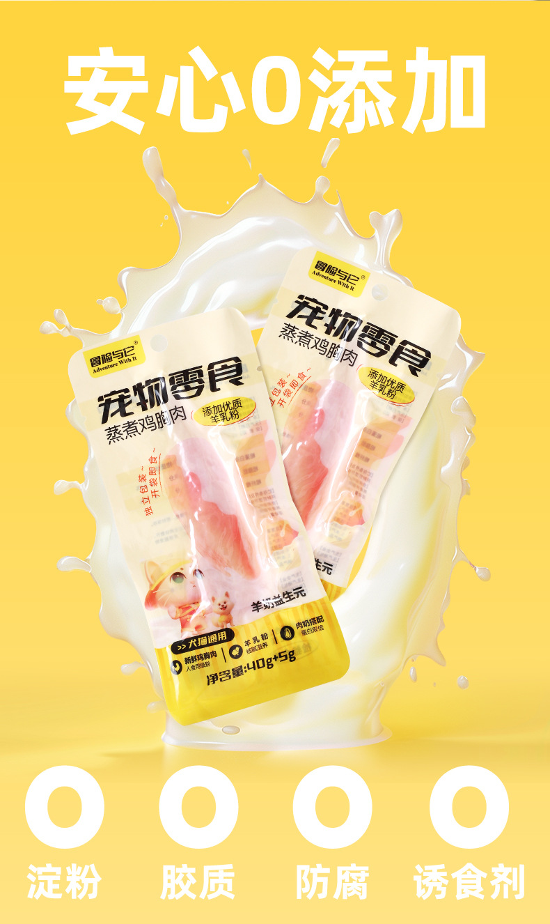 冒险与它蒸煮鸡胸肉400g猫咪零食猫草鱼油靓毛化毛球成猫幼猫零食