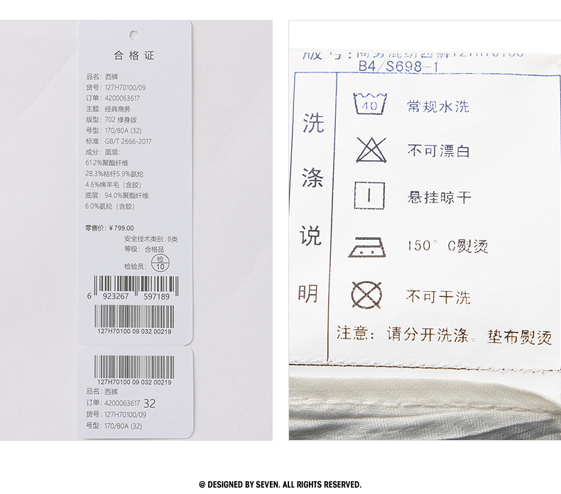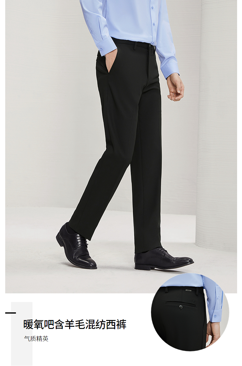 【暖氧吧】柒牌男士西裤2025秋冬新款含羊毛商务正装厚款直筒长裤 127H70100