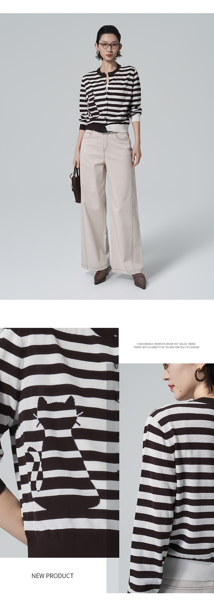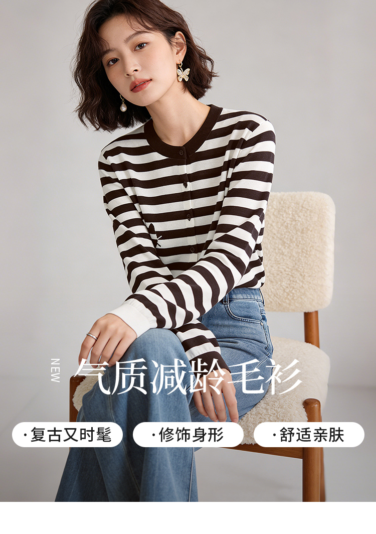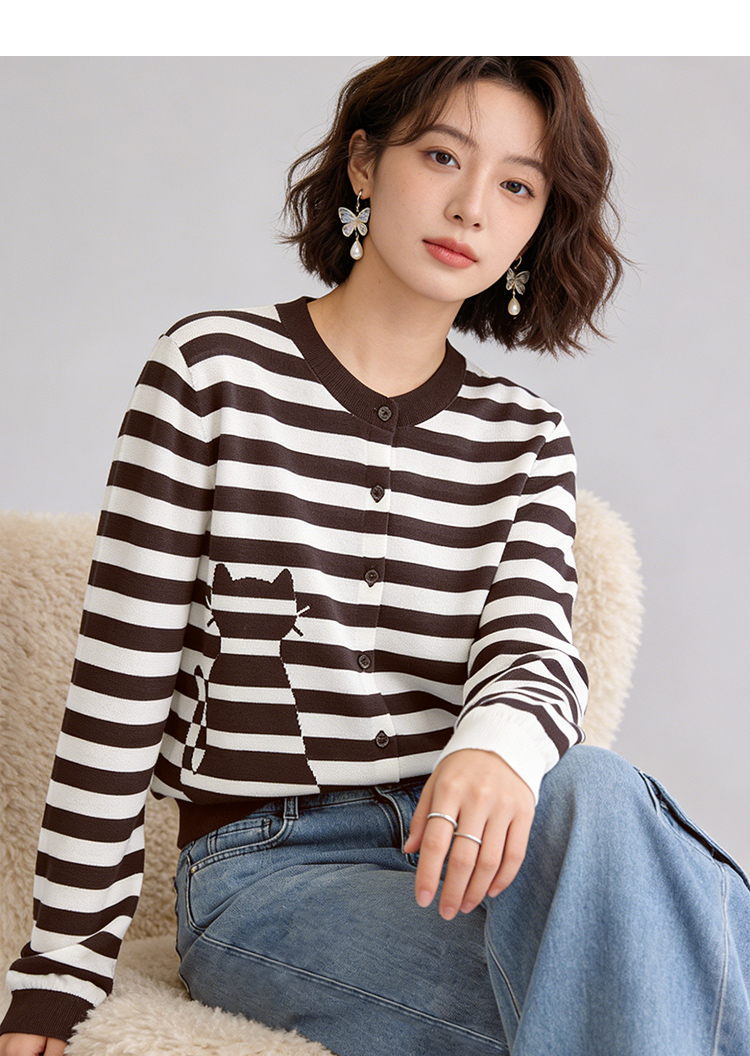 【商场同款】CNR6357 “ 躲猫猫毛开衫 ” 棉纱线打造 干爽舒适 条纹开衫