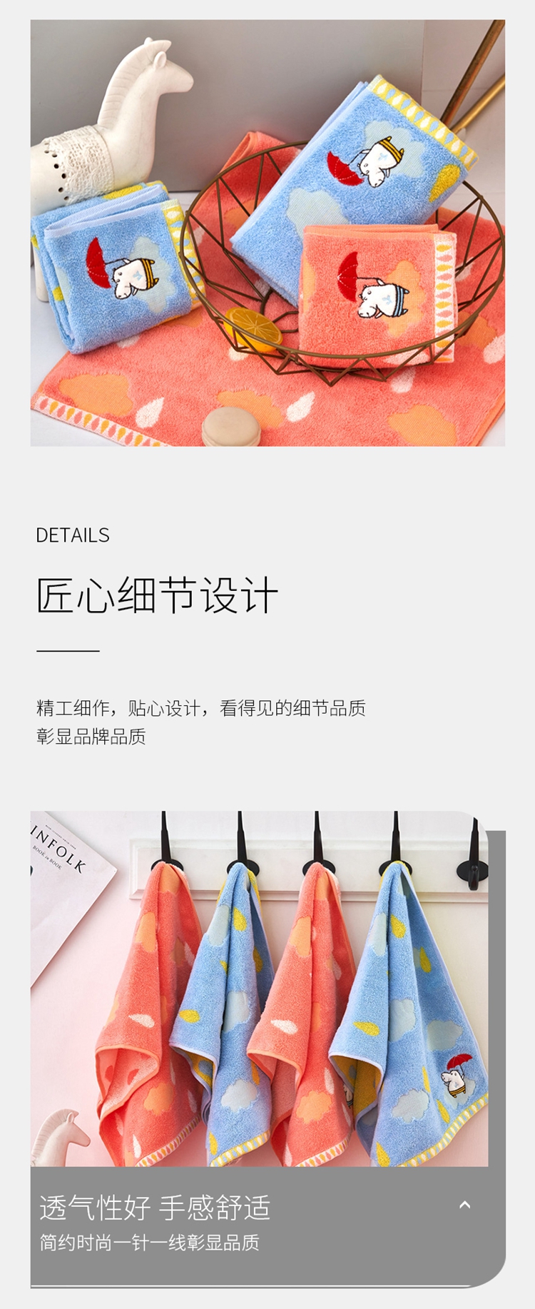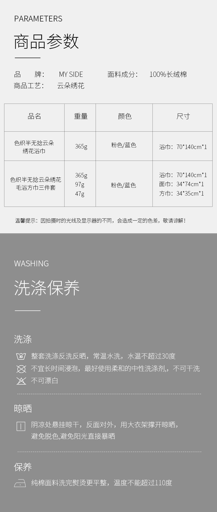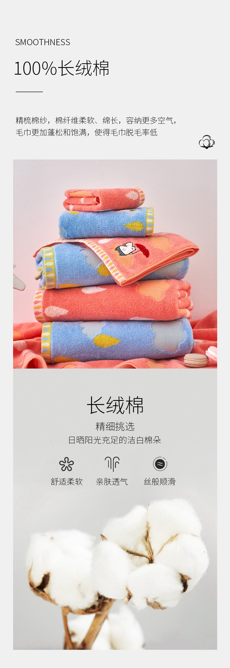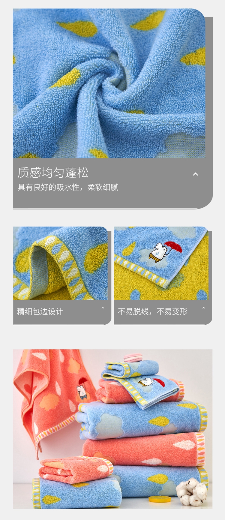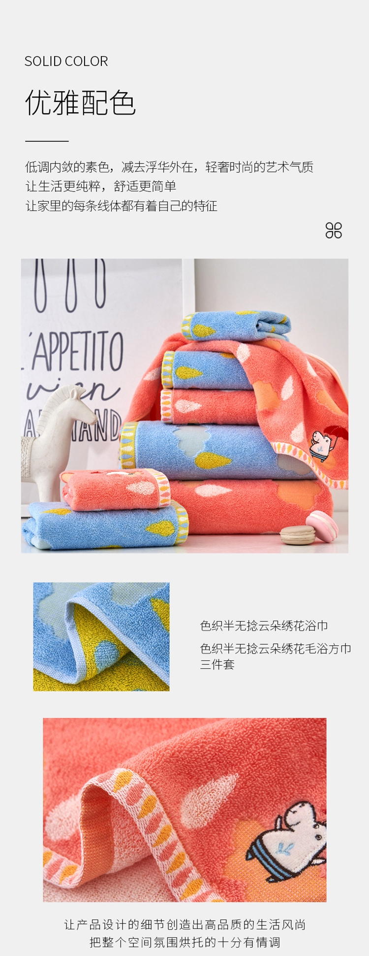 色织半无捻云朵绣花毛浴方巾三件套 全棉浴巾 柔软亲肤吸水性好