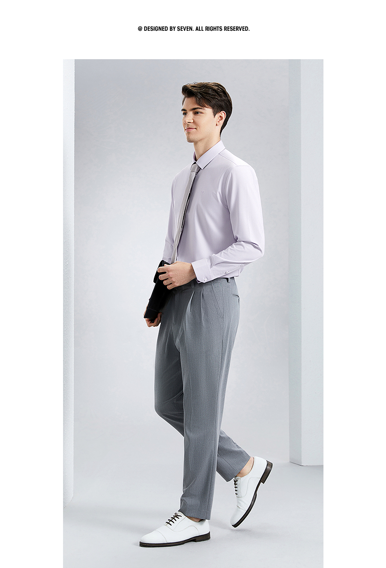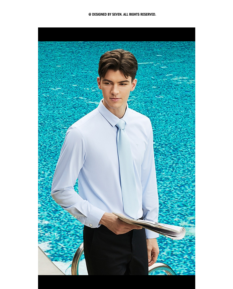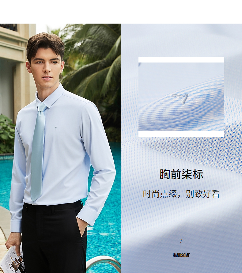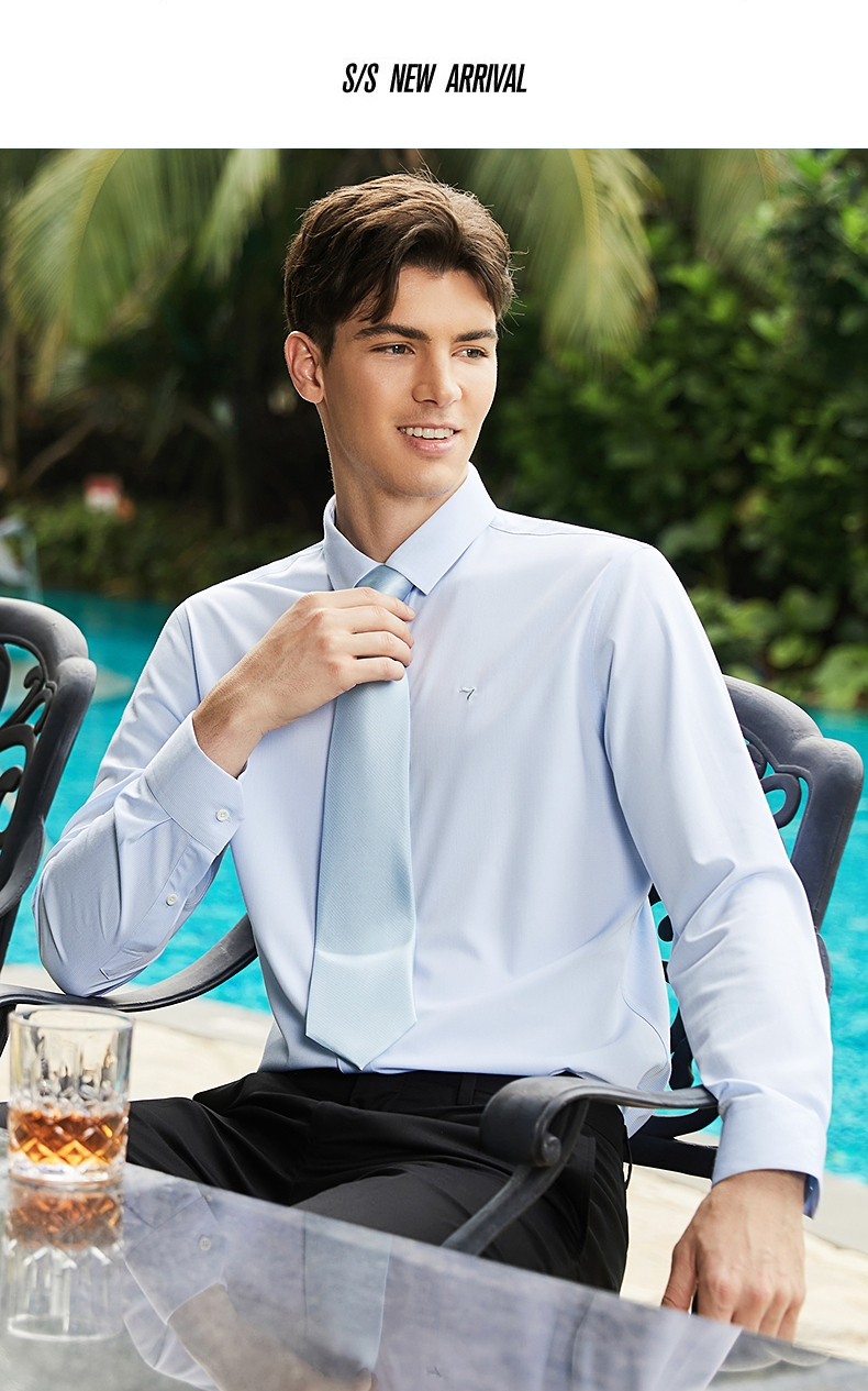 【含竹纤维】柒牌男士长袖衬衫2024春季新款商务休闲条纹提花衬衣 126A70690