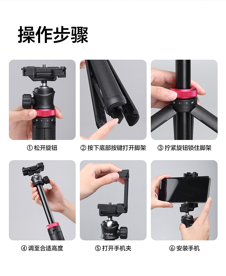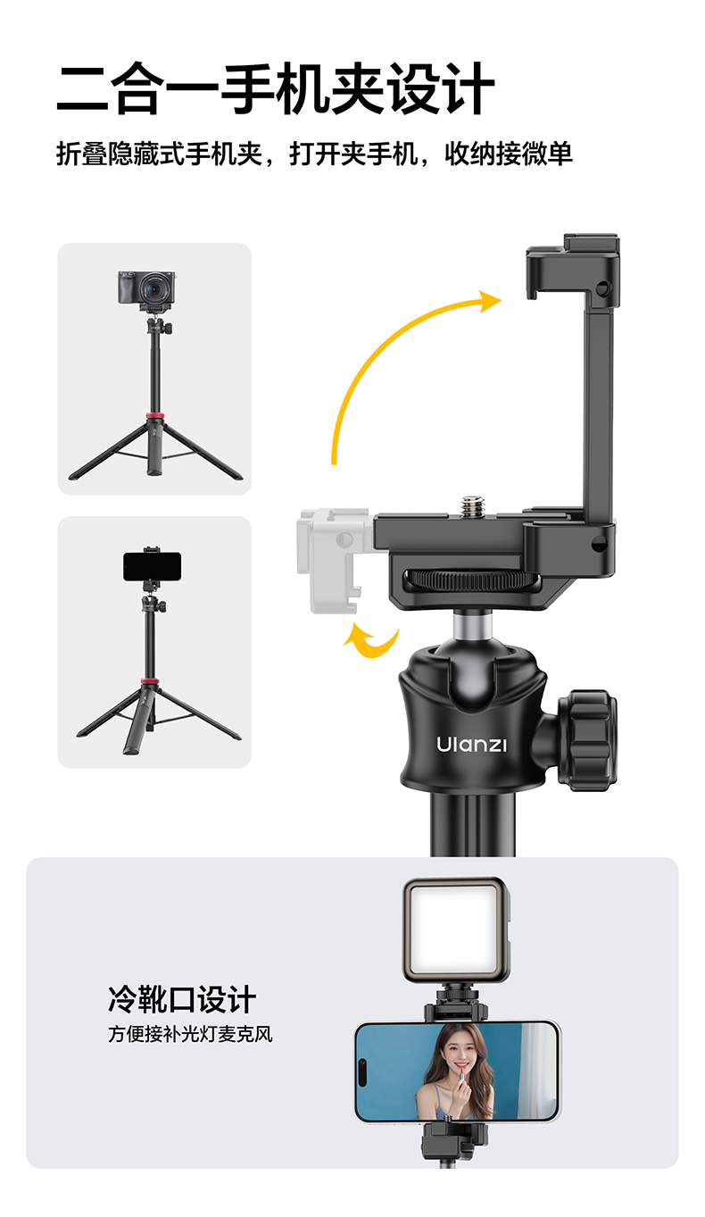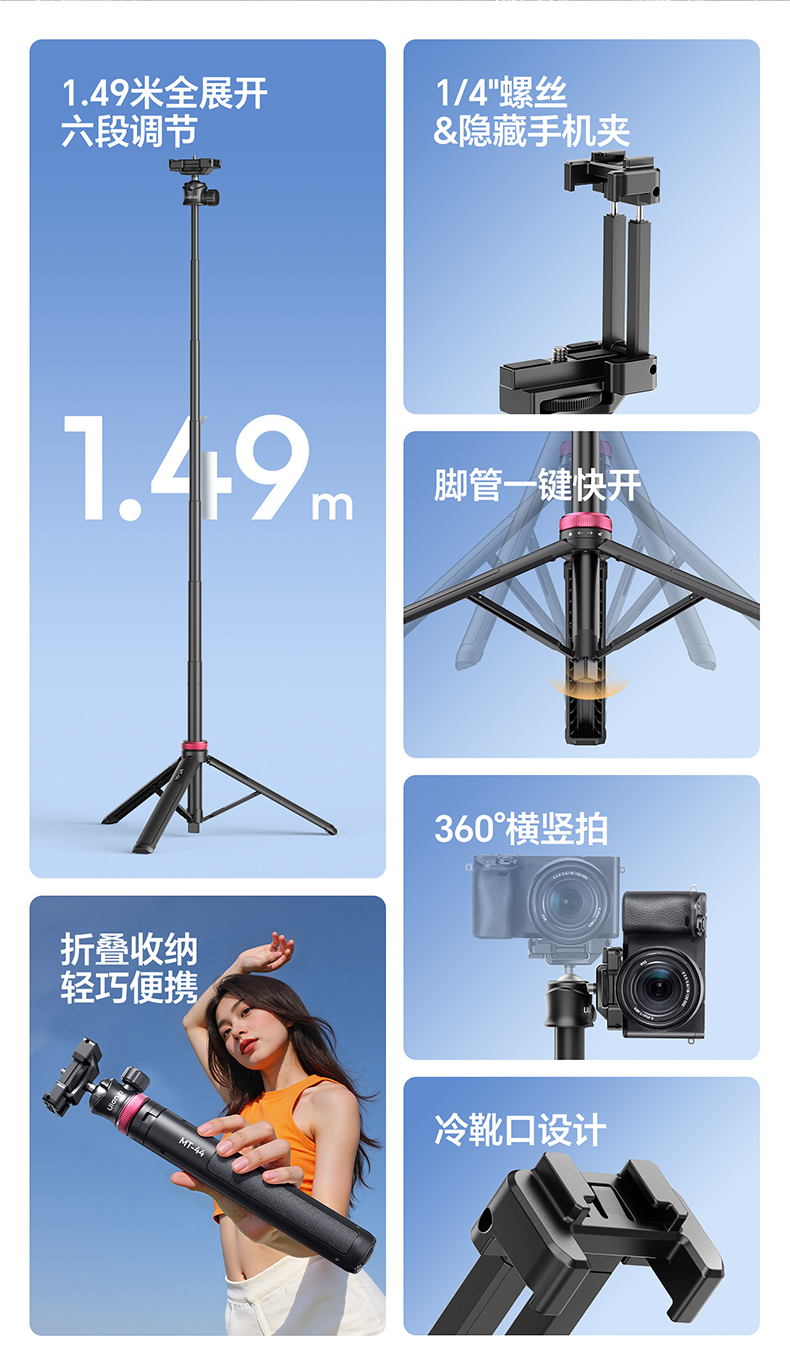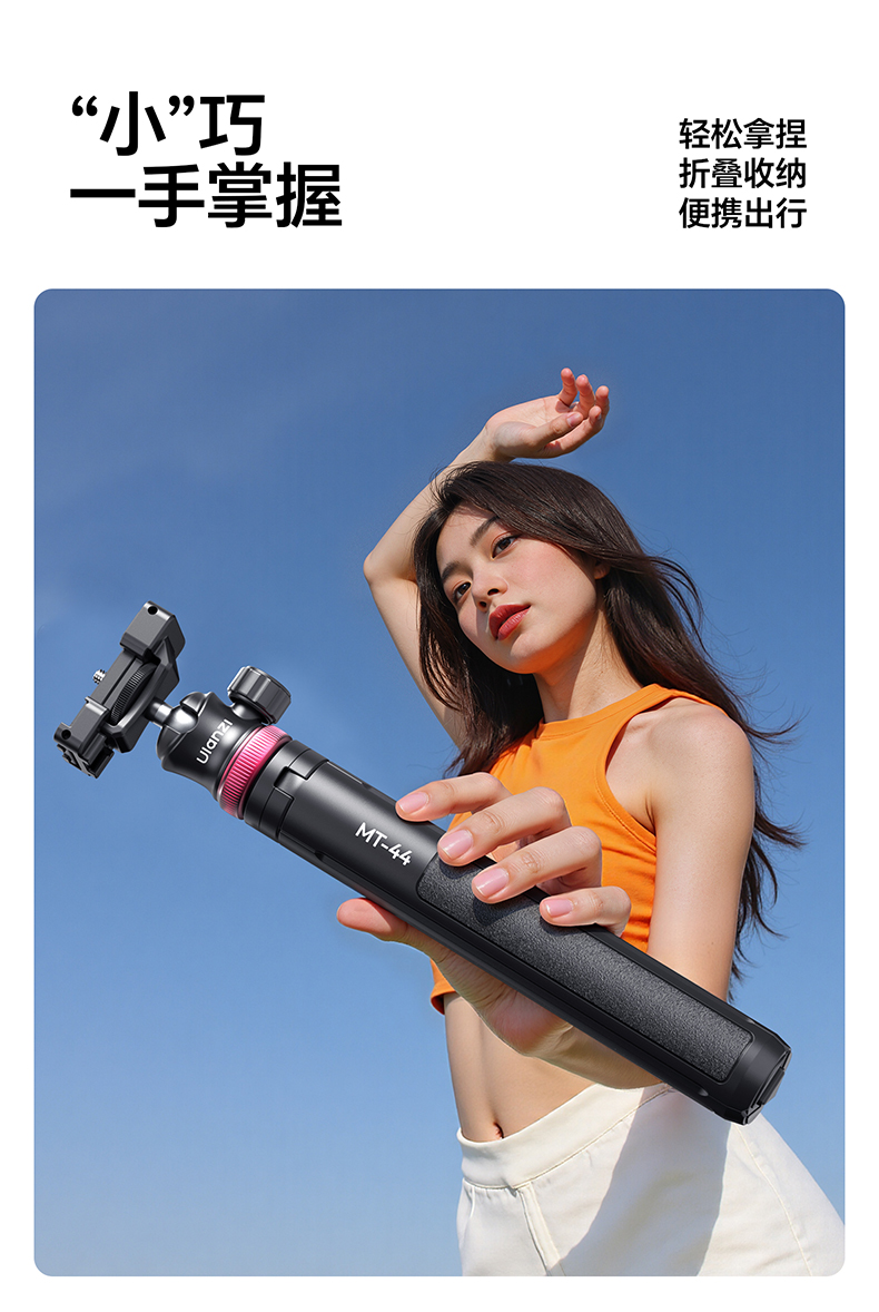 Ulanzi优篮子 MT-44一键打开延长支架户外便携手机vlog直播拍照自带手机夹手持自拍杆桌面支架
