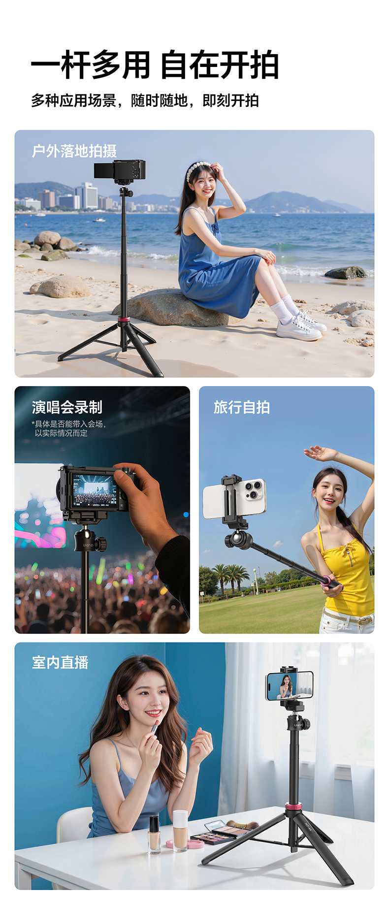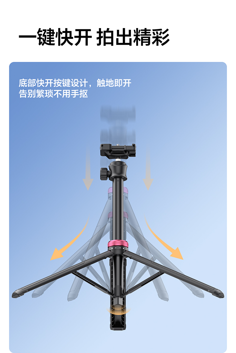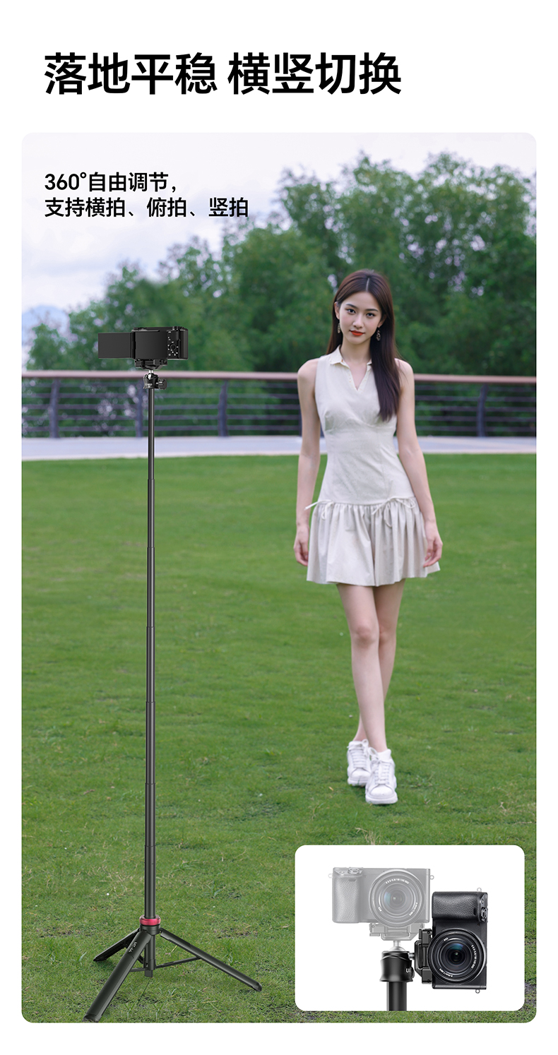 Ulanzi优篮子 MT-44一键打开延长支架户外便携手机vlog直播拍照自带手机夹手持自拍杆桌面支架
