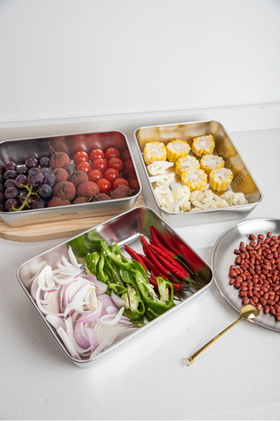 ✅一组3个,尺寸约26*20*6CM 食品级304不锈钢材质 不怕氧化、不怕摔 可进烤箱,洗碗机 可在电磁炉,燃气灶上加热食物 方形保鲜盒,带PP透明防尘盖 生熟食随便装,不易串味 喜欢囤货、备菜的姐妹,一定要买! 它在一定程度上能延长食材/食物保鲜期 真的真的很省心~