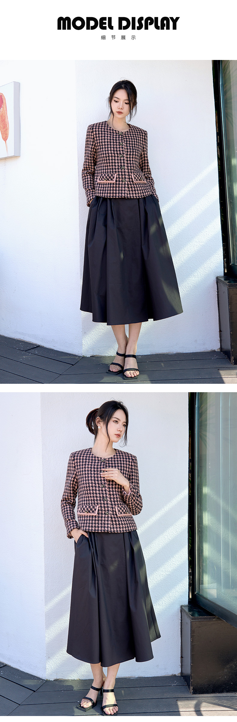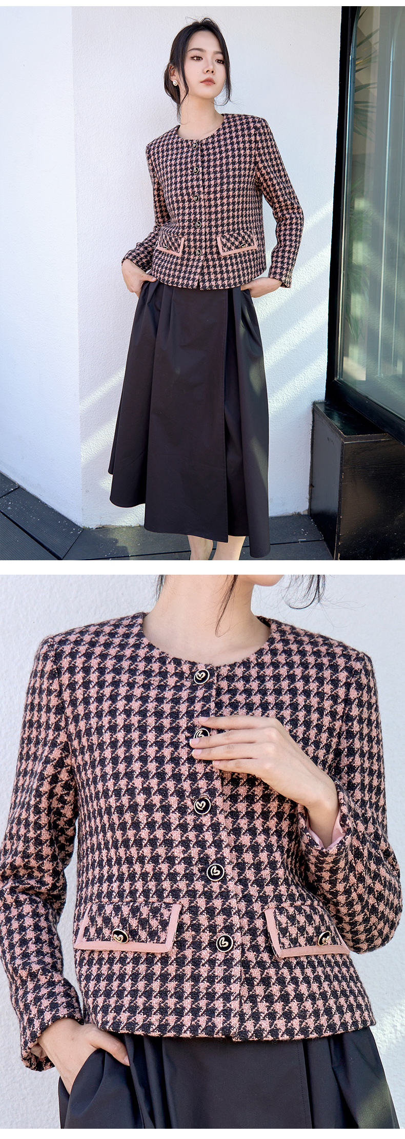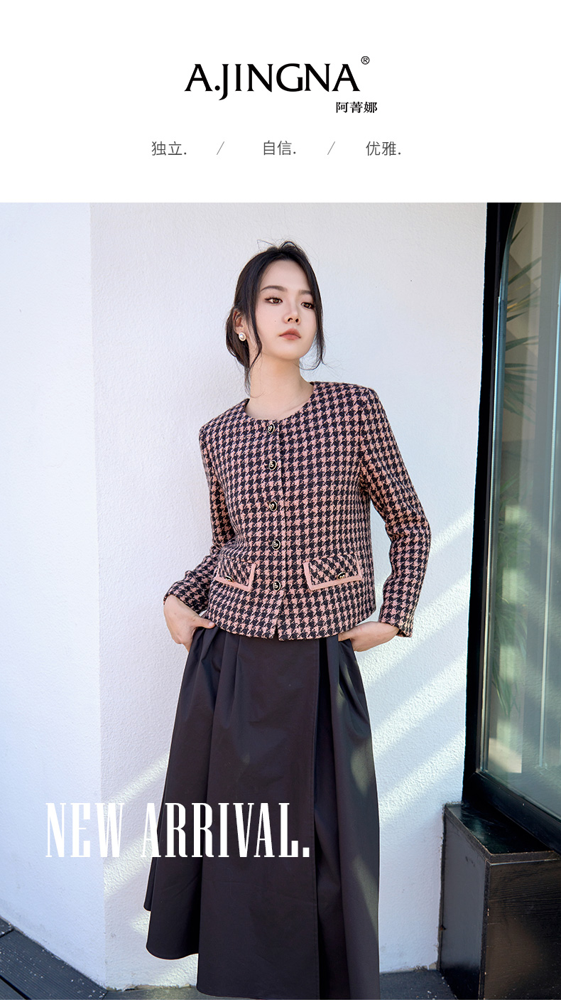 【商场同款】阿菁娜宫廷风千鸟格短款香风上衣A28Q107003
