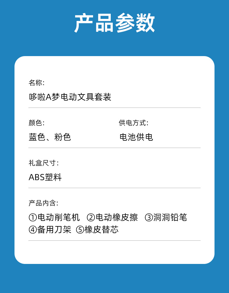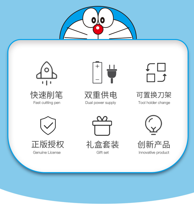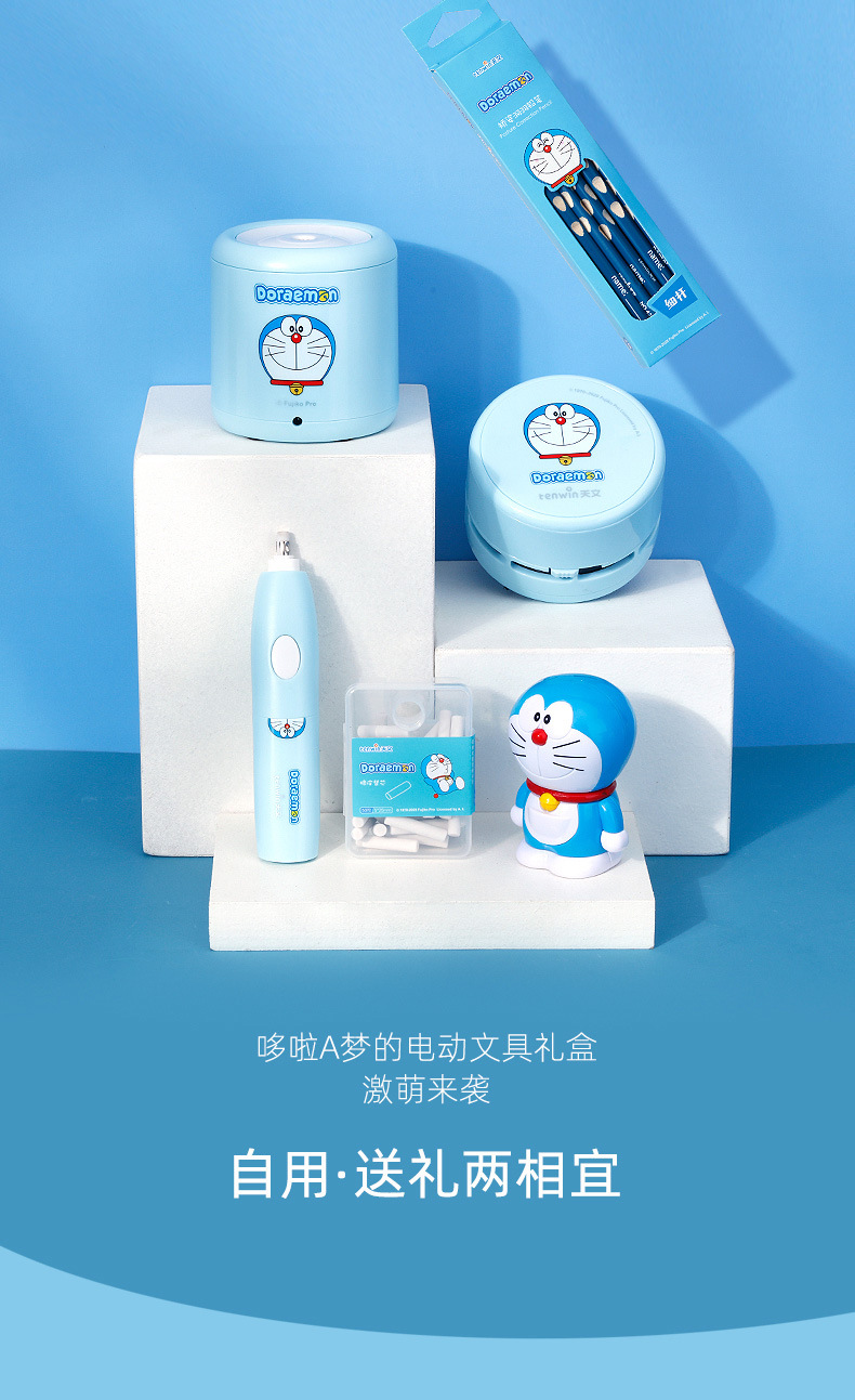 【哆啦A梦正版IP联名】电动卷笔刀削笔吸尘器橡皮擦文具套装儿童学习A8095