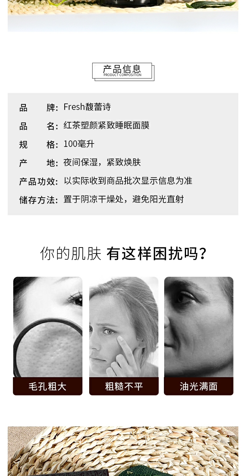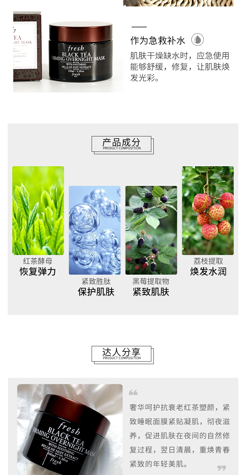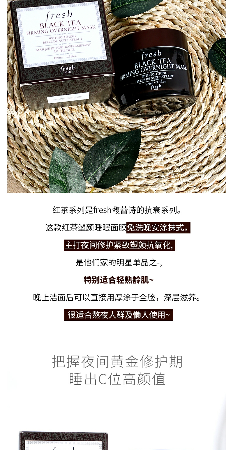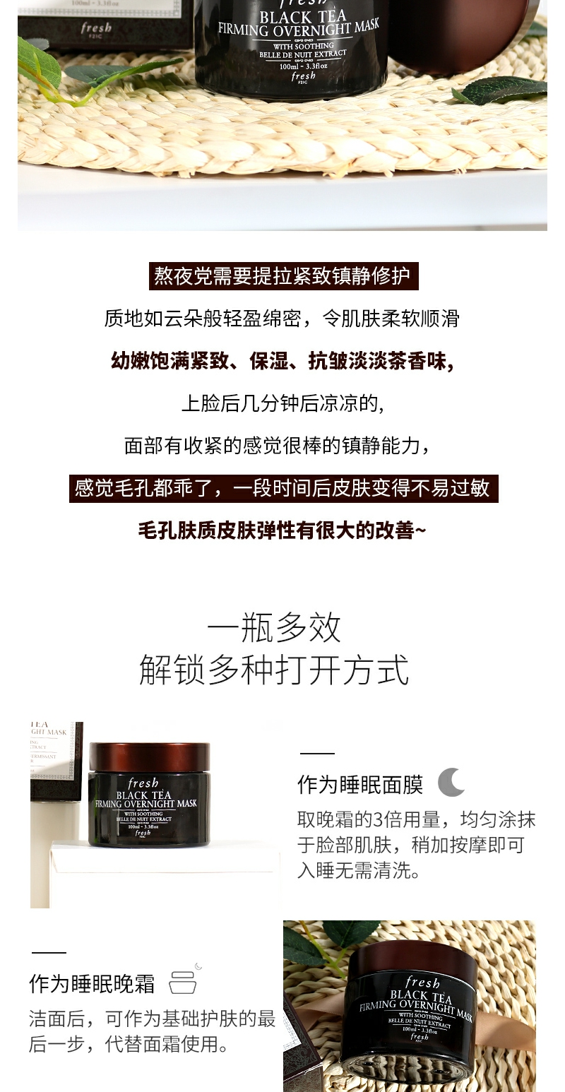 【YZ】fresh馥蕾诗红茶塑颜紧致修护免洗睡眠面膜100ml补水滋润黑罐