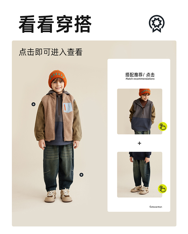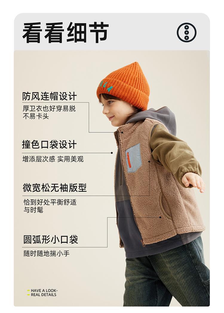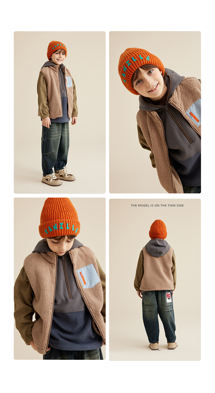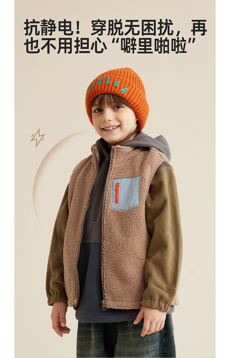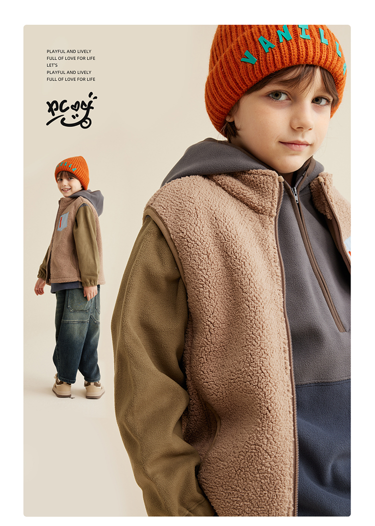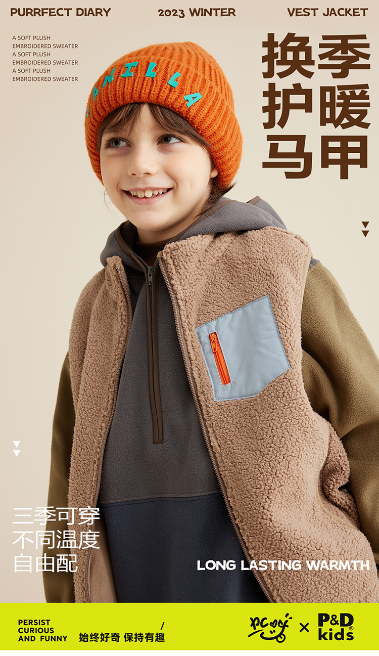 【轻暖绒绒马甲】儿童口袋撞色绒绒马甲PQMJ2303