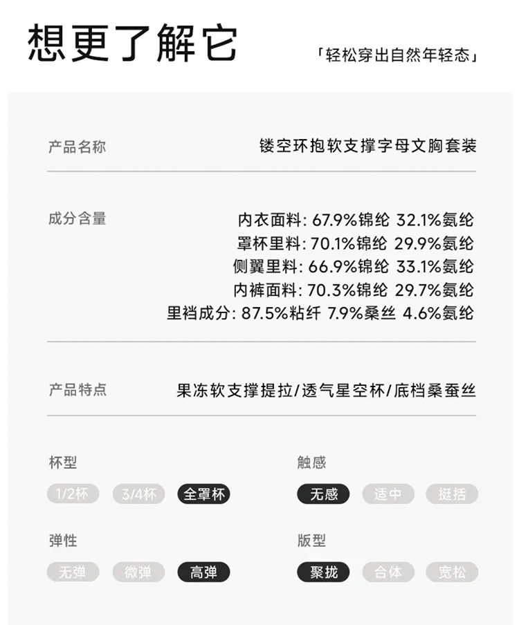 【限时109元4套「内裤+内衣」】【门店线下款】维妮芳反重力双提拉内衣套装