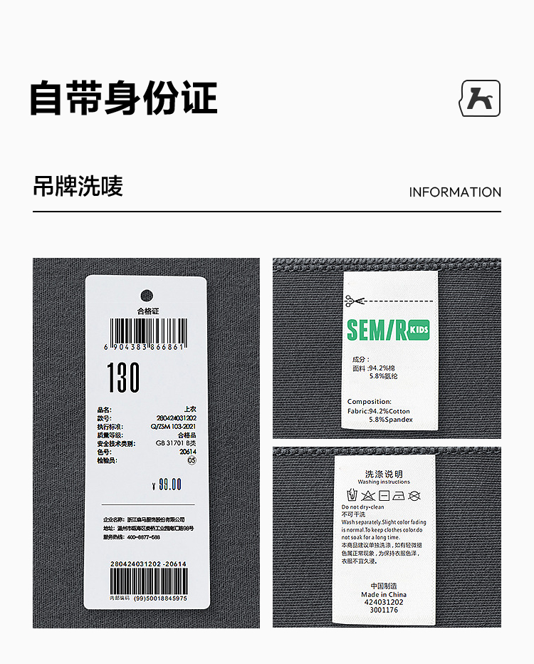森马儿童家居服年新款吸湿速干时尚撞色长袖上衣男童女童秋装