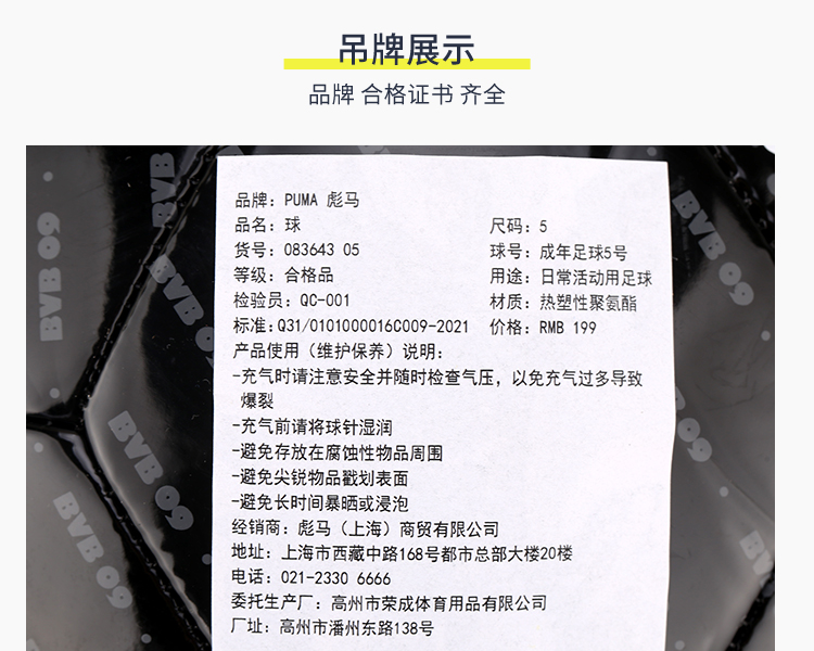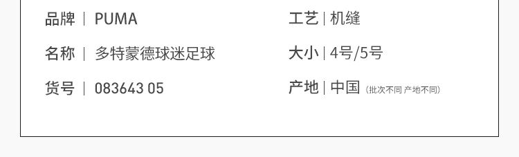PUMA/彪马多特蒙德运动比赛训练4/5号足球成人男083643-05