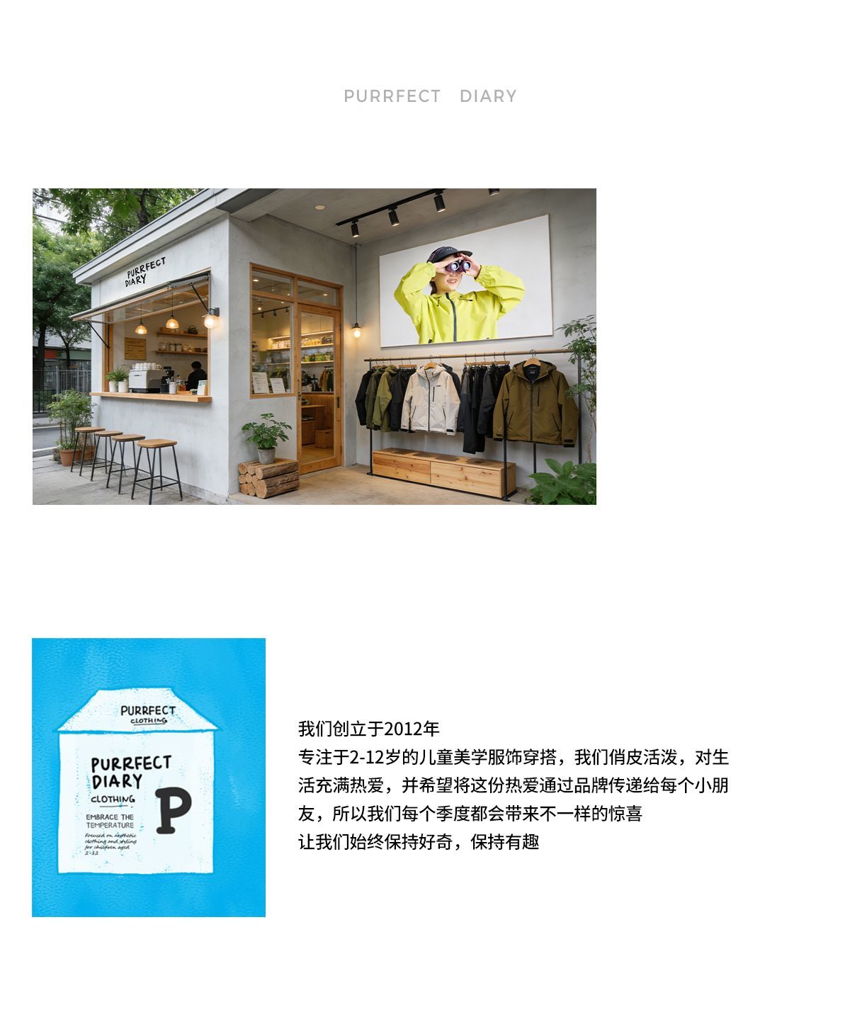 - Purrfect-Diary专注于贴近自然随性的穿着概念,轻奢平价的童装文化传播,在产品设计上更加注重婴童穿着的舒适性、安全性、更出众的国际化品牌,将欧美的育婴文化在中国进行深入的传播与推广。