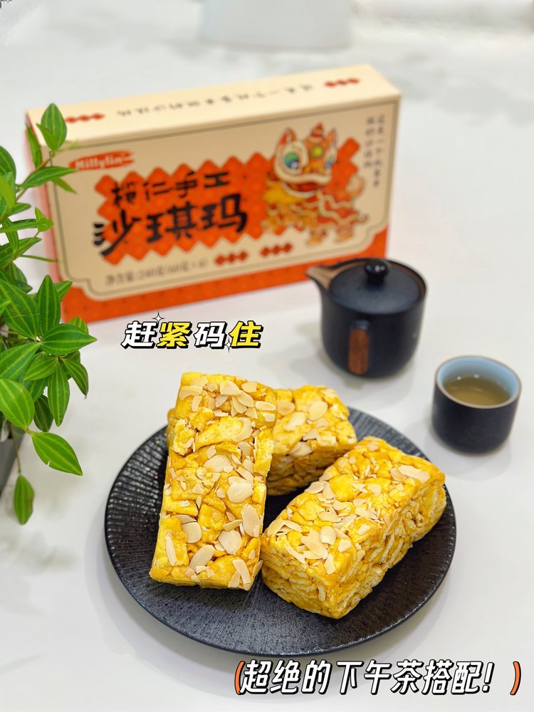 下午茶C位非它莫属!榄仁沙琪玛+清茶,纯蛋黄的香甜撞上茶香,每一口都在说“生活好哇塞”🥳