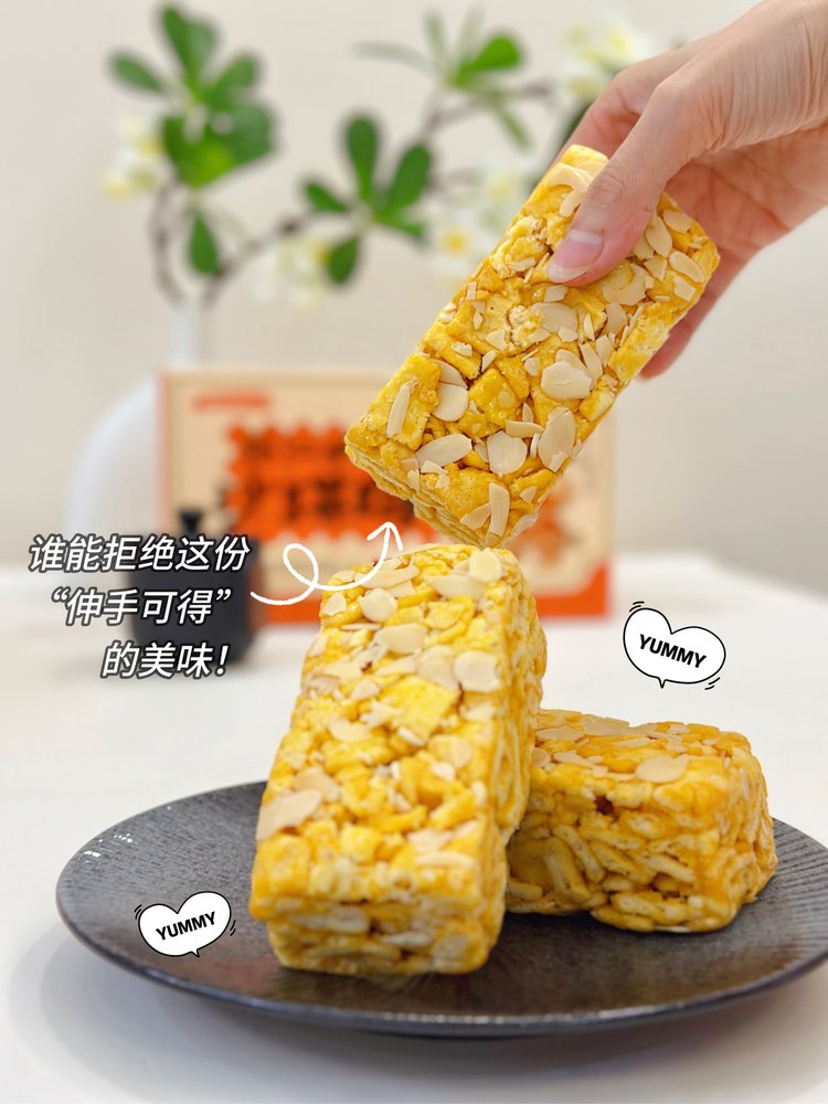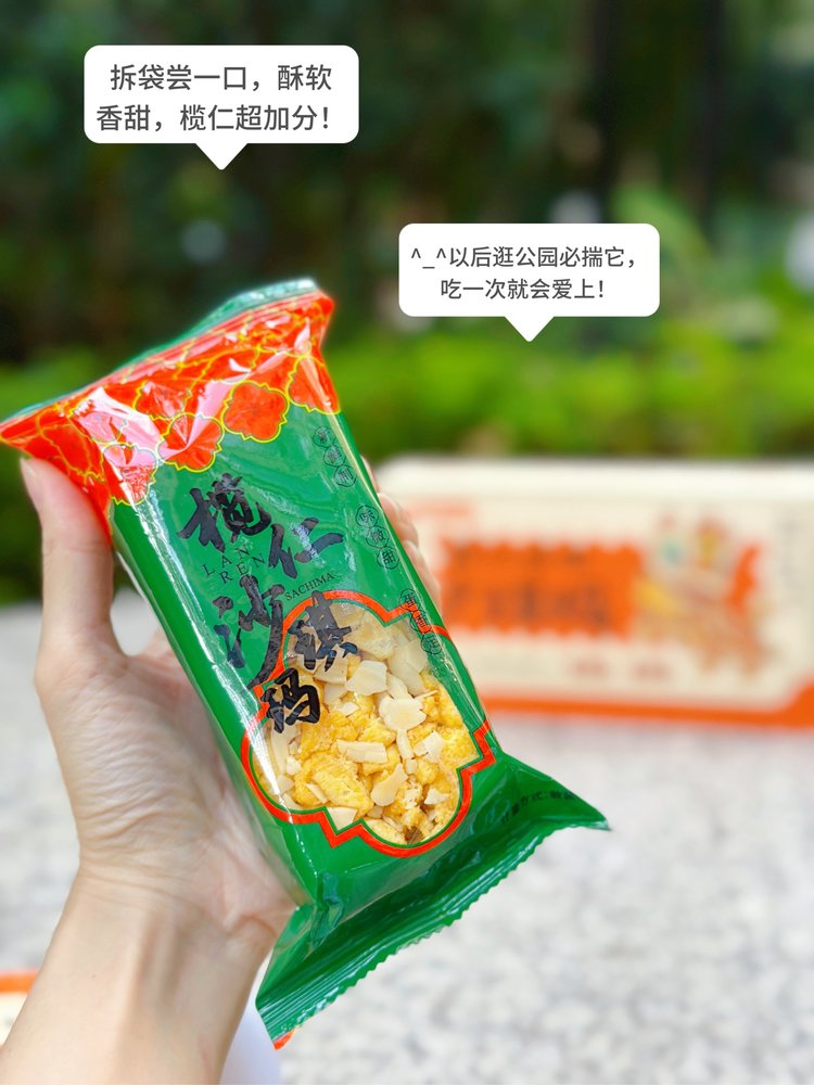 沙琪玛在手,快乐我有!不管是小区长椅晒太阳,还是出门逛街压马路,揣上几包榄仁手工沙琪玛,随时随地开启甜蜜补给,走哪香到哪