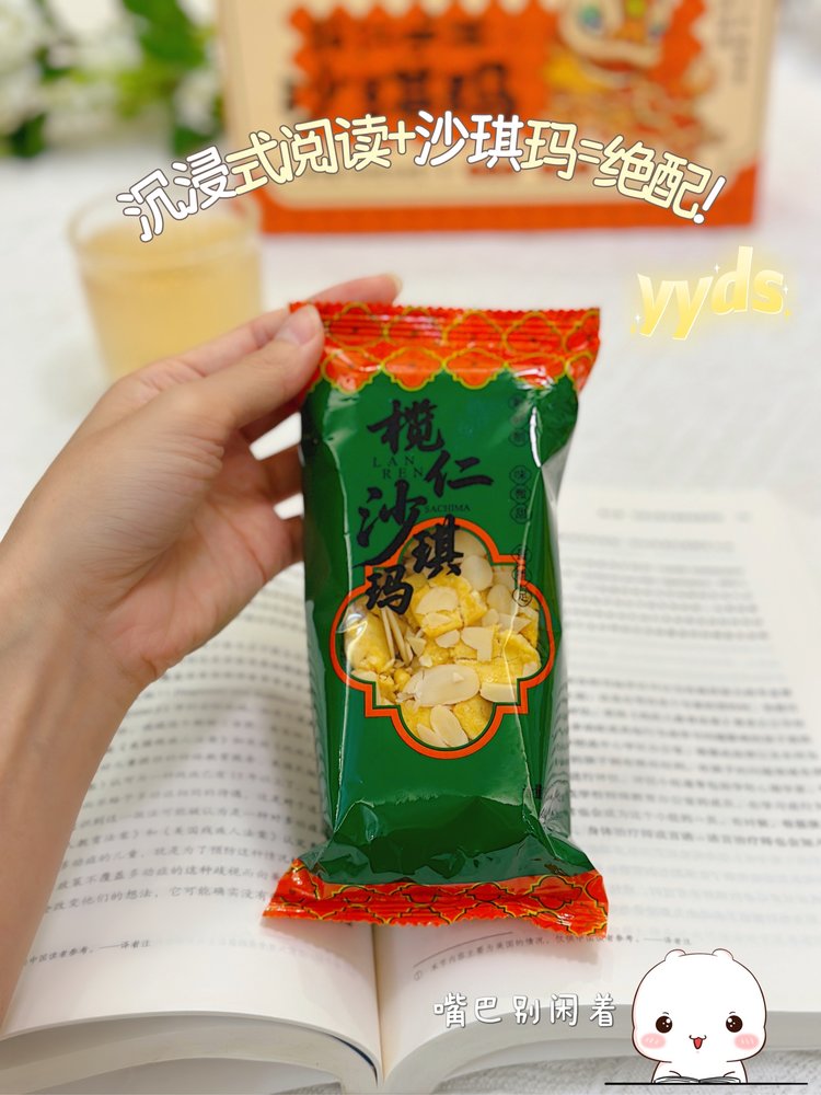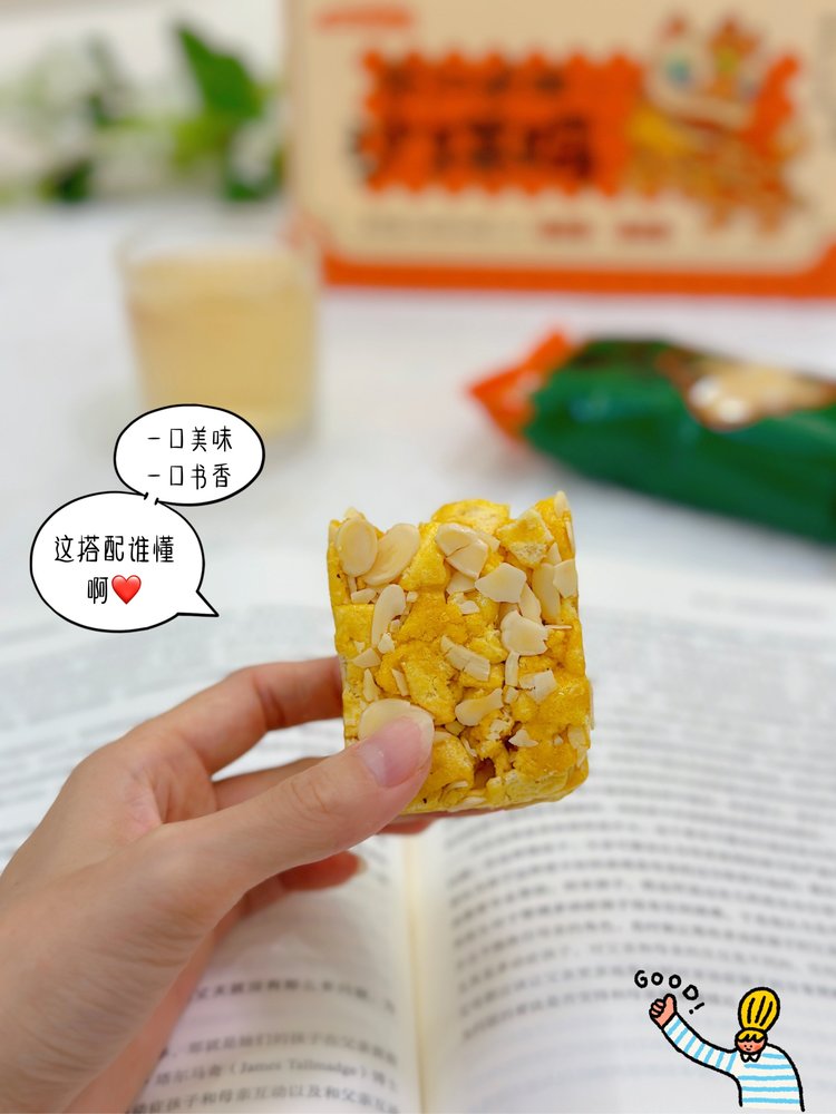把沙琪玛加入阅读仪式感!看书看饿了,伸手就是裹着榄仁的香甜沙琪玛,一口美味,一口书香,这搭配谁懂啊💖