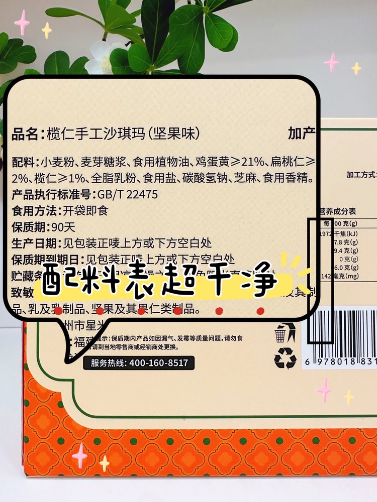 选零食,配料干净才是硬通货!这款沙琪玛礼盒,纯蛋黄手作、真榄仁,配料表清清白白,递出去的是美味,更是让人放心的诚意🥰
