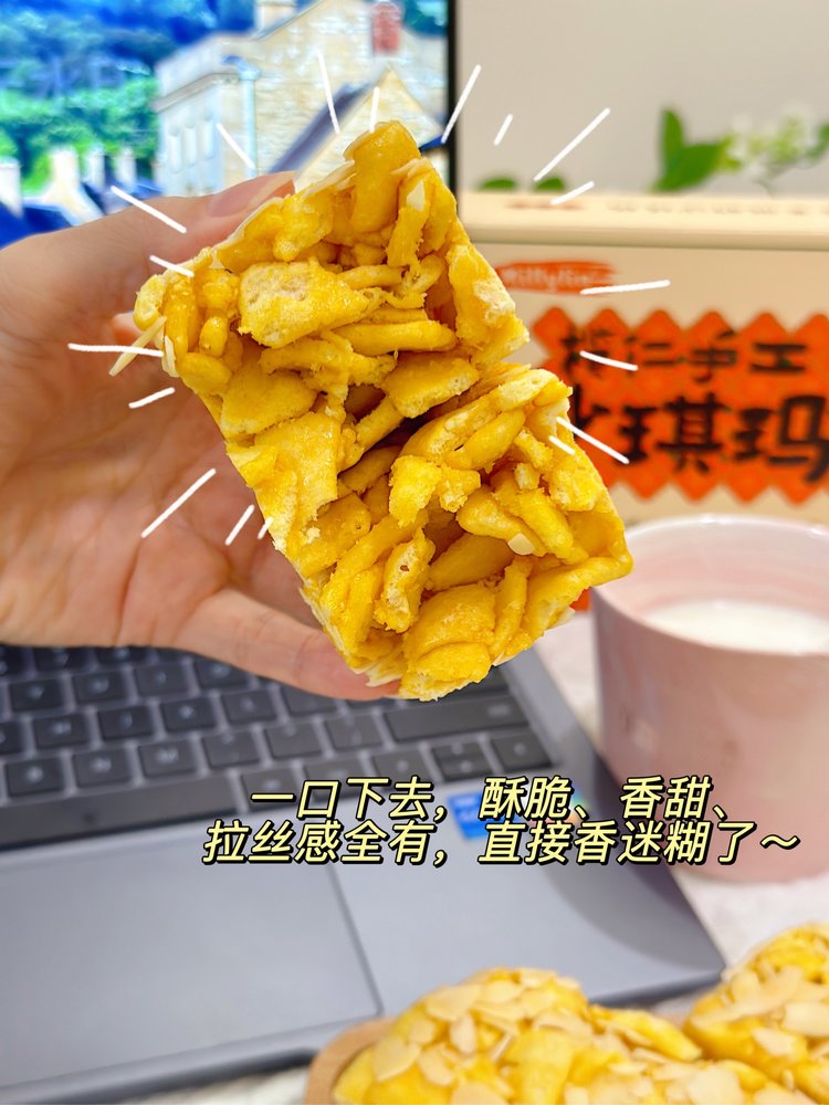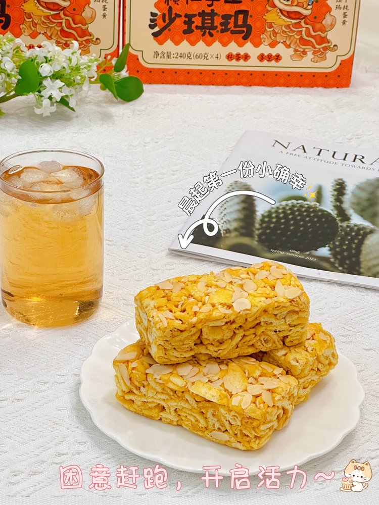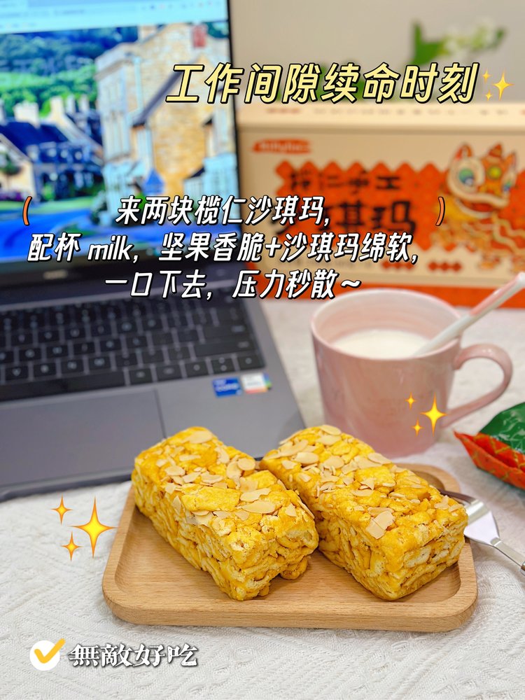 被工作追着跑的下午,靠这两块沙琪玛续命~榄仁香脆,沙琪玛绵软,配奶一吃,瞬间回血,打工人快乐回来了✨