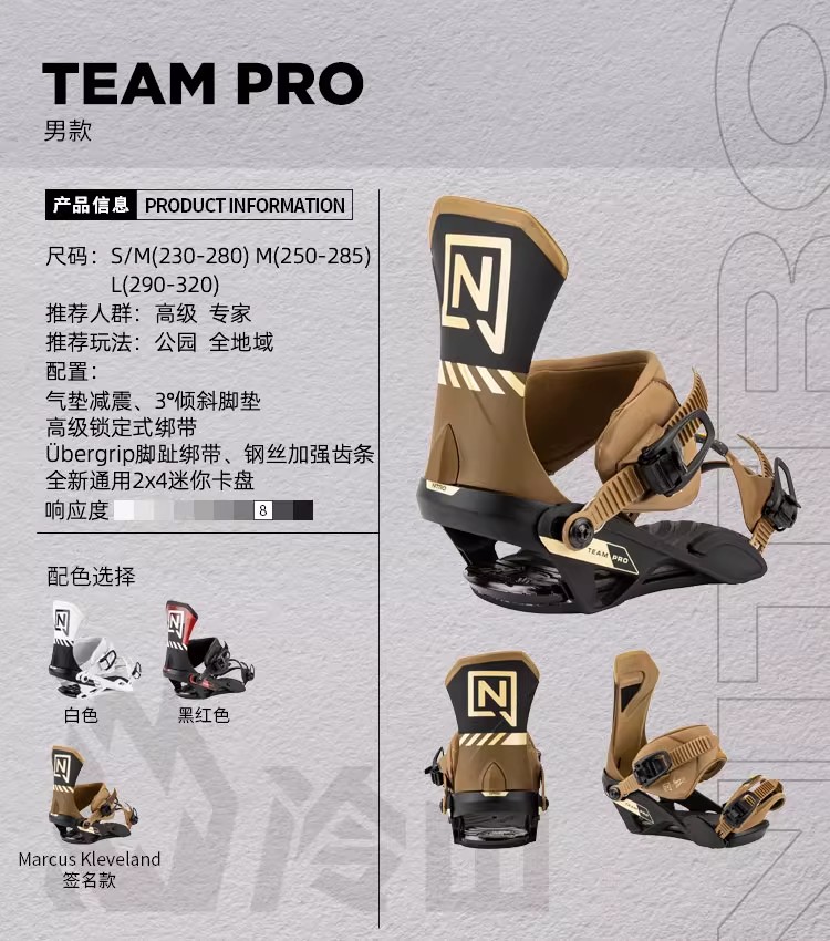 冷山雪具NITRO单板固定器TEAM PRO全能滑行刻滑固定器男女款2526