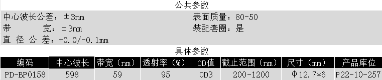 BP598/59K OD3@200-1200 T>90% Φ12.7*6 带通滤光片 (带套圈)
