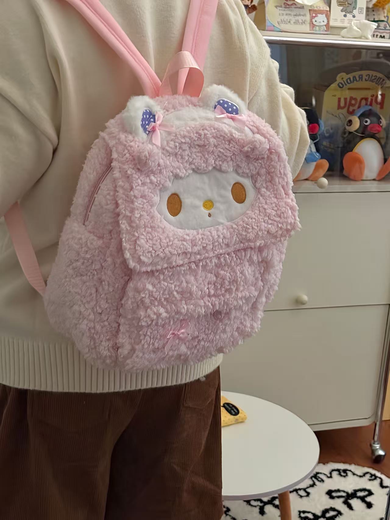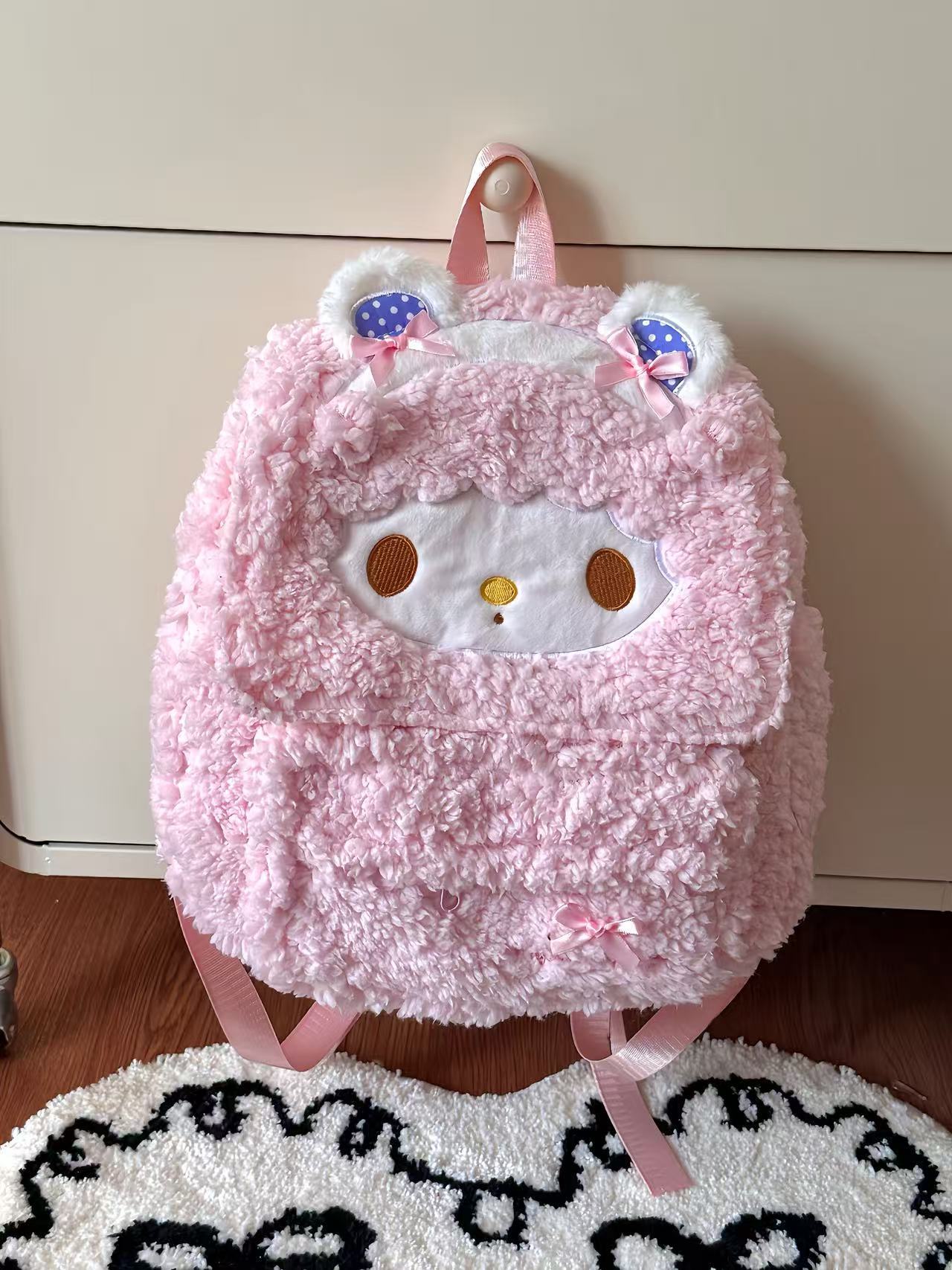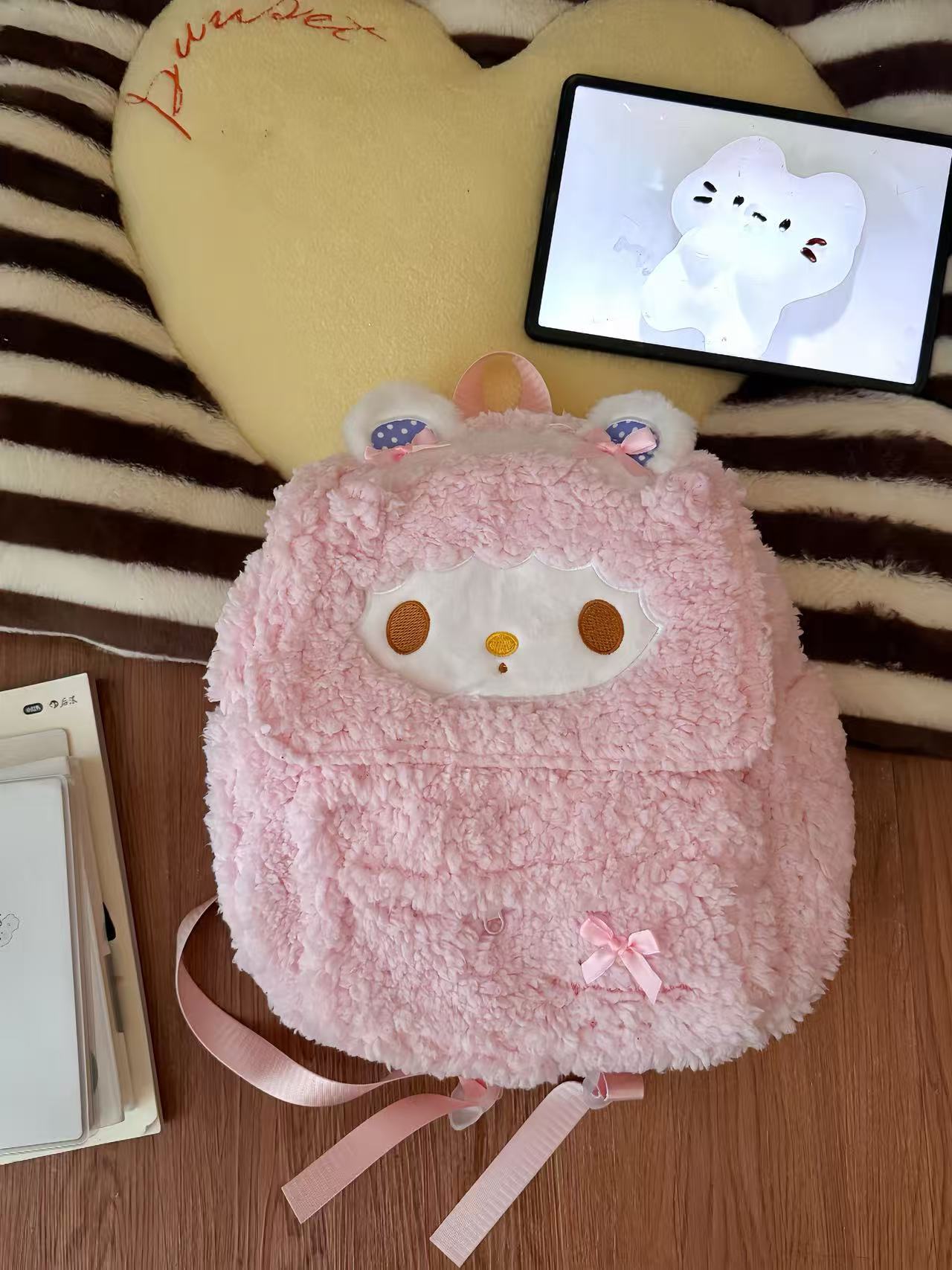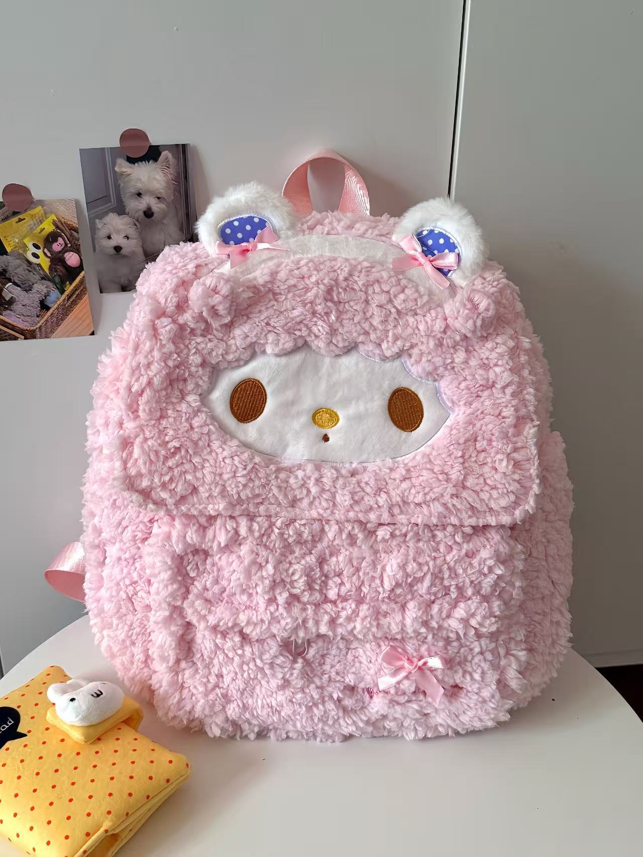 【YW】无忧购新款甜美白耳蝴蝶结小羊可爱双肩包大容量包盖卡通背包(截单后3-5天发货)