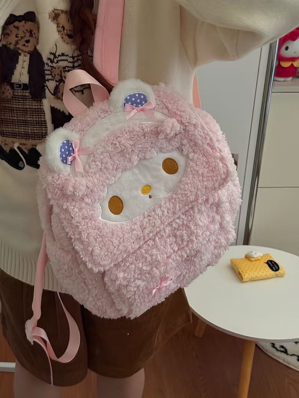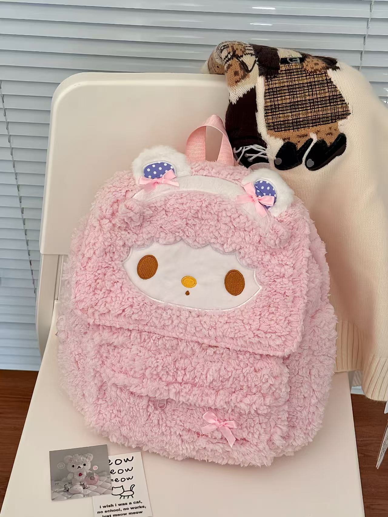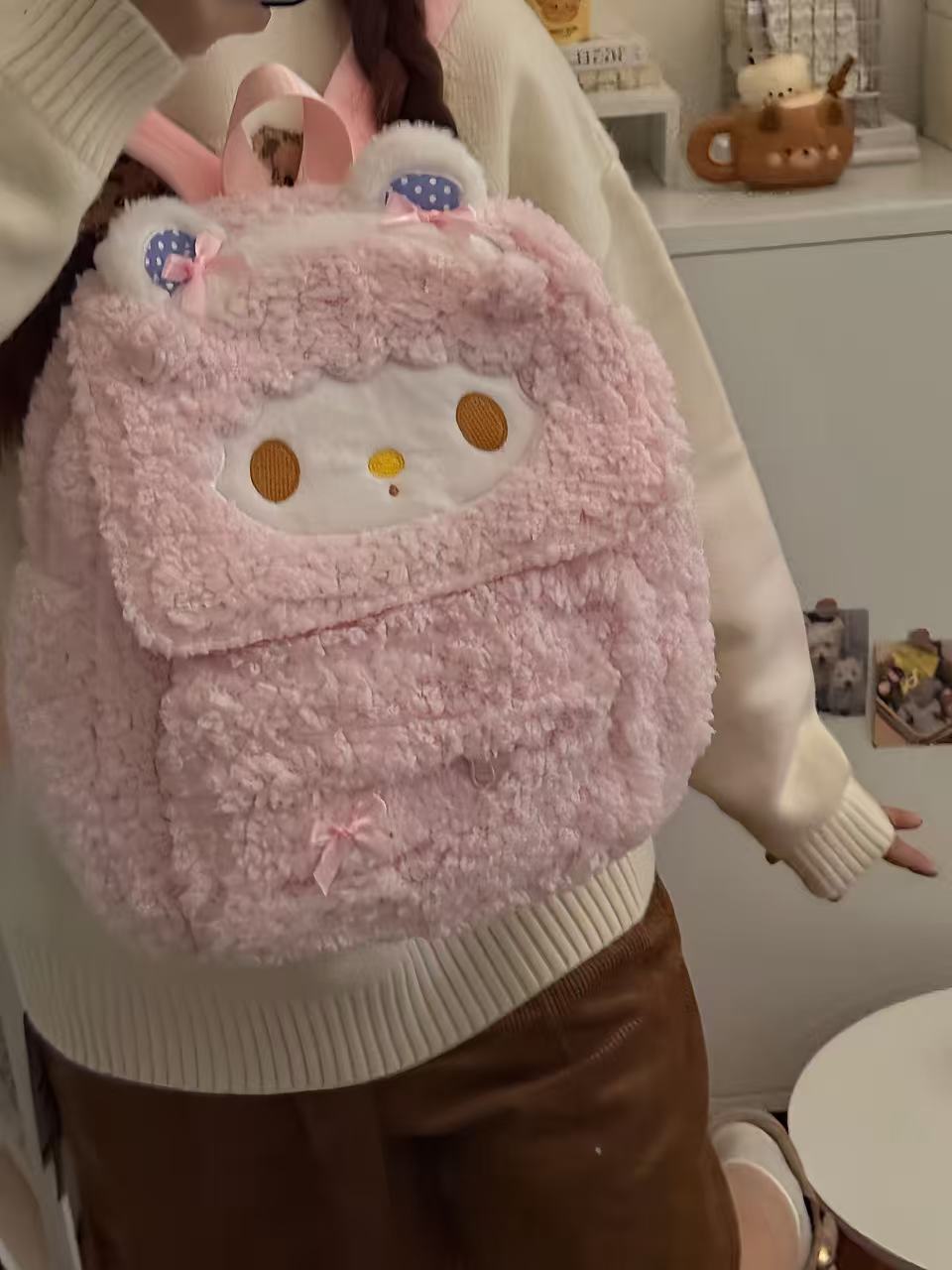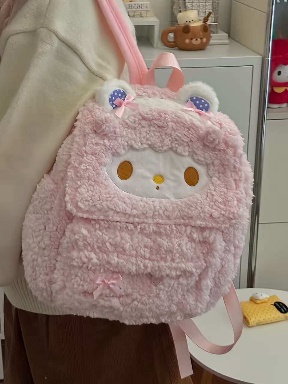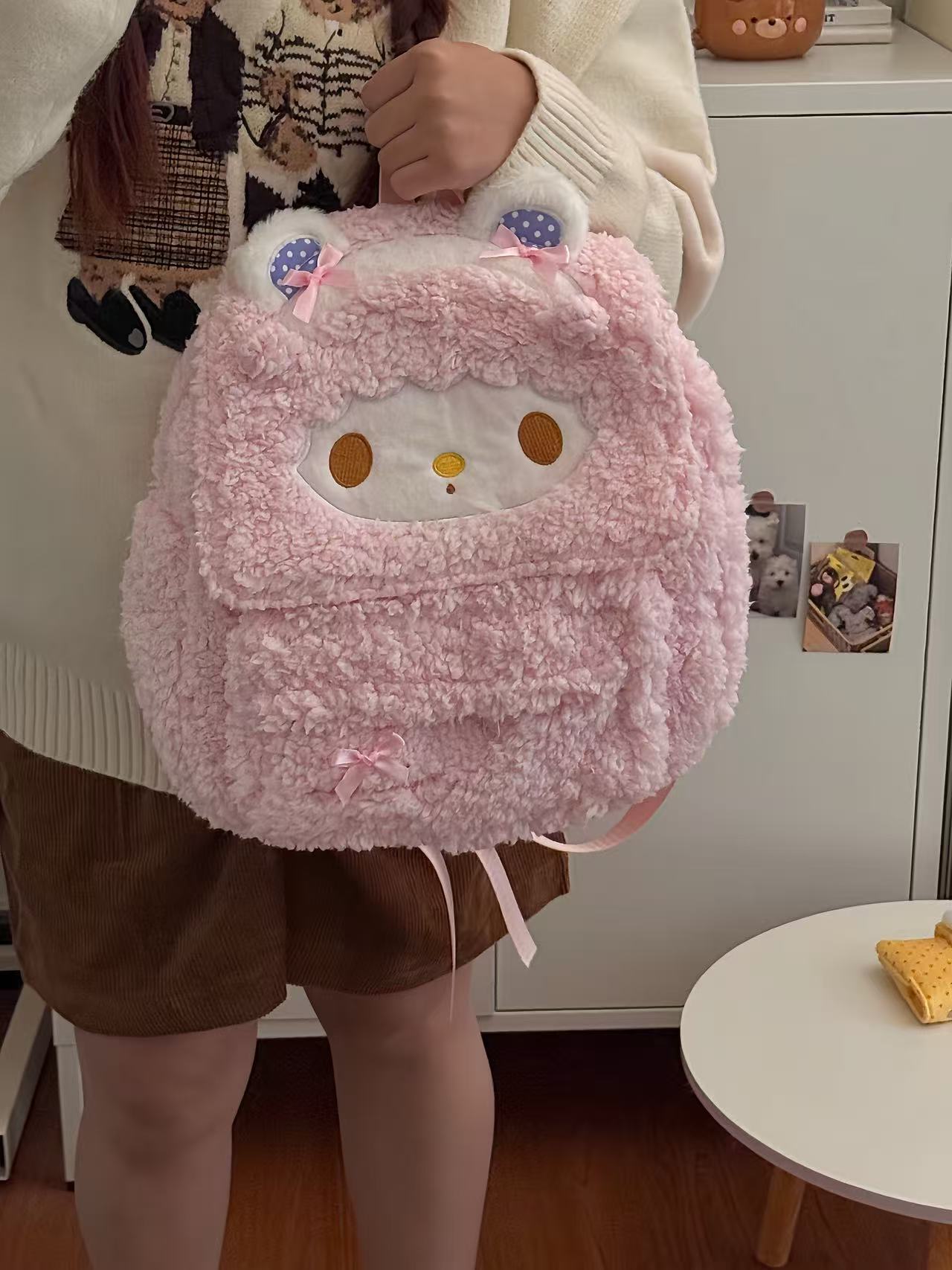 【YW】无忧购新款甜美白耳蝴蝶结小羊可爱双肩包大容量包盖卡通背包(截单后3-5天发货)
