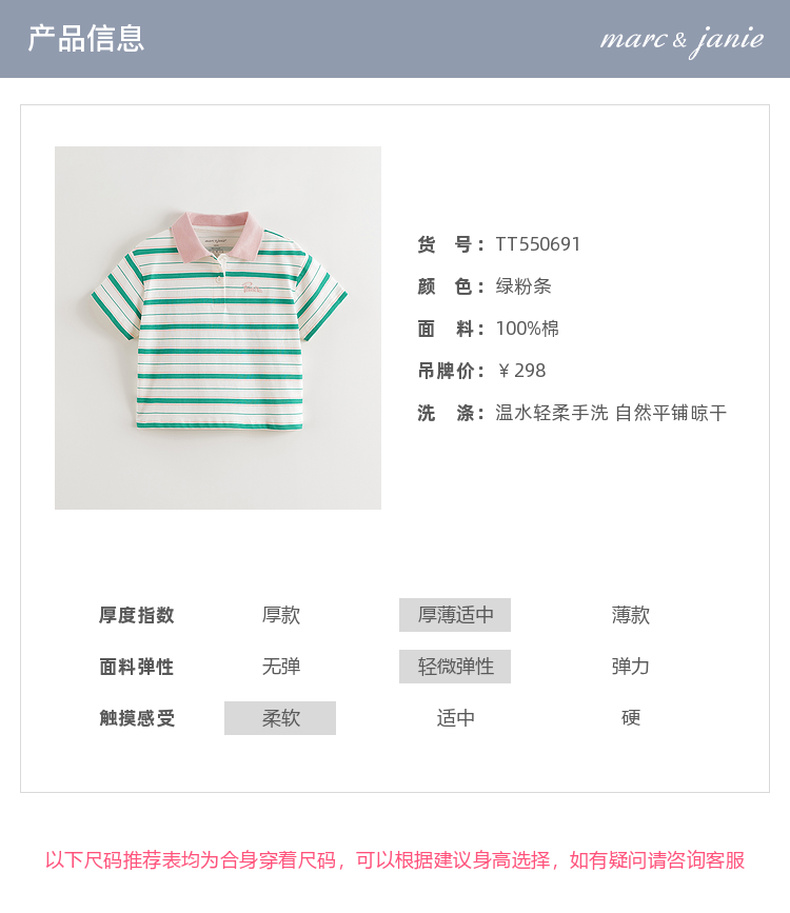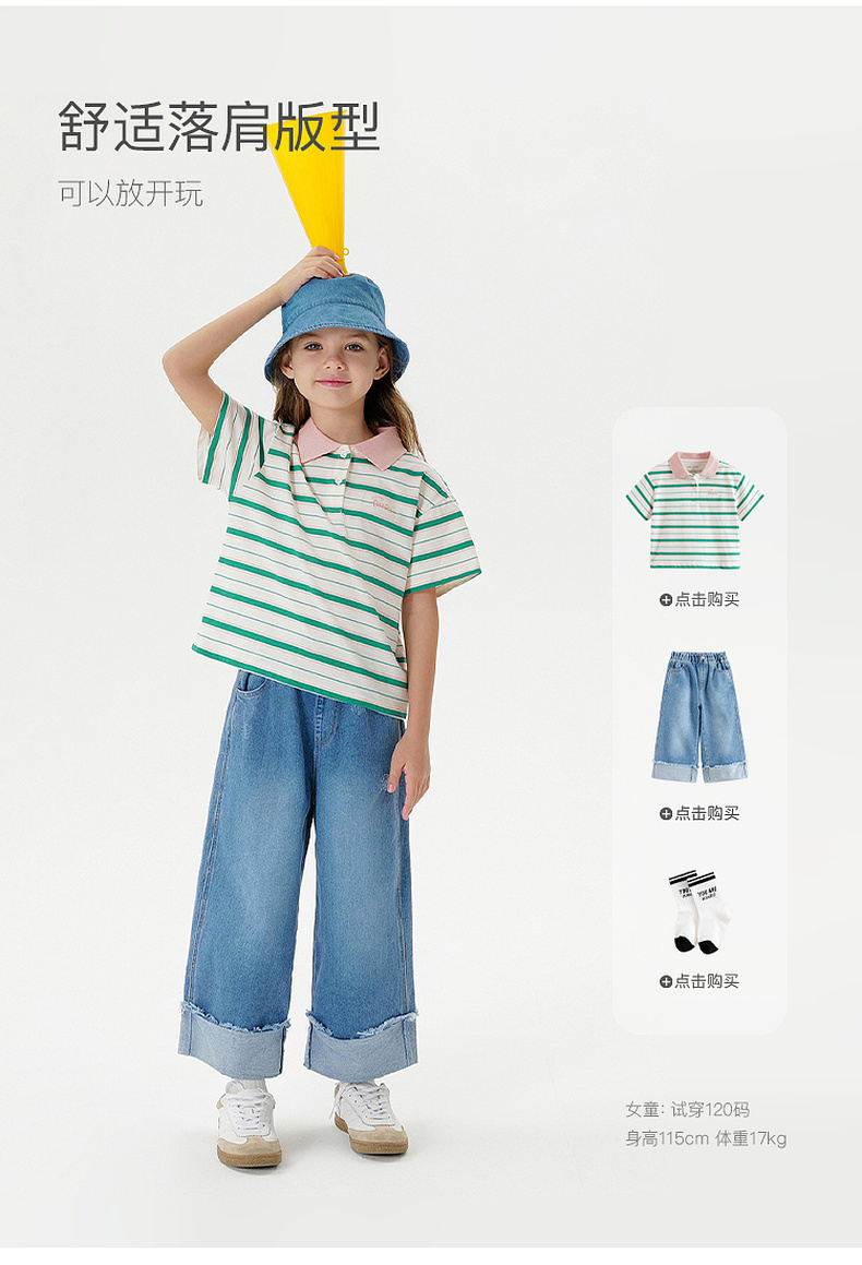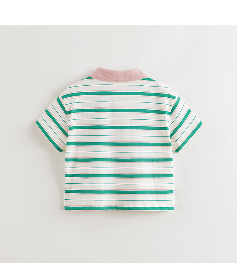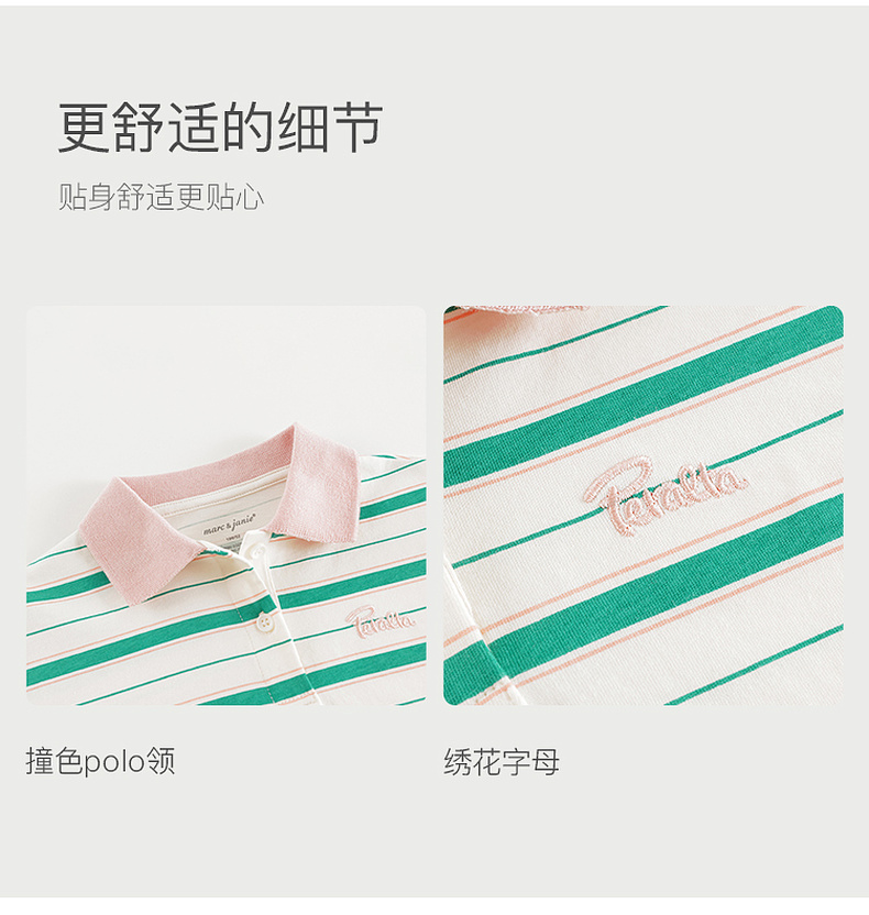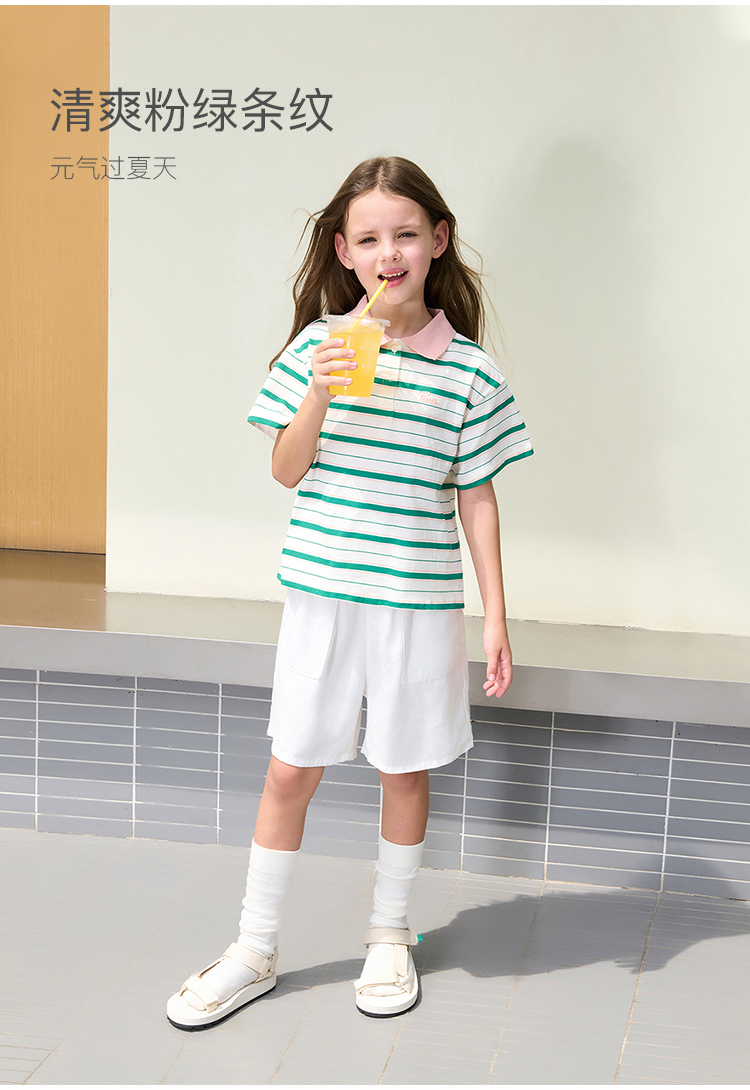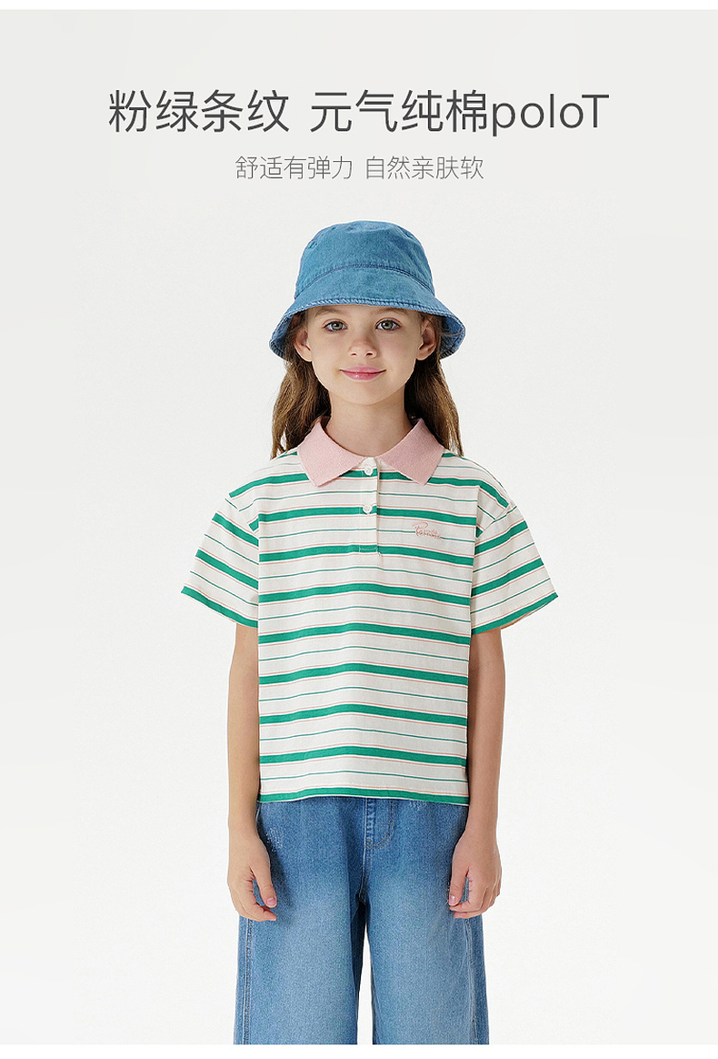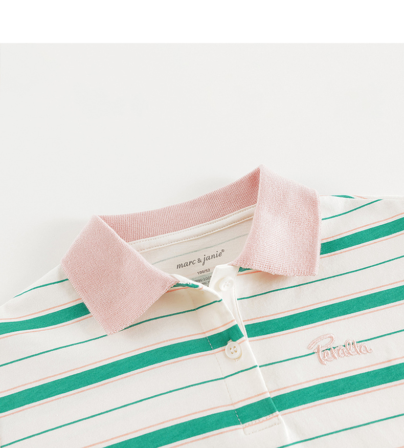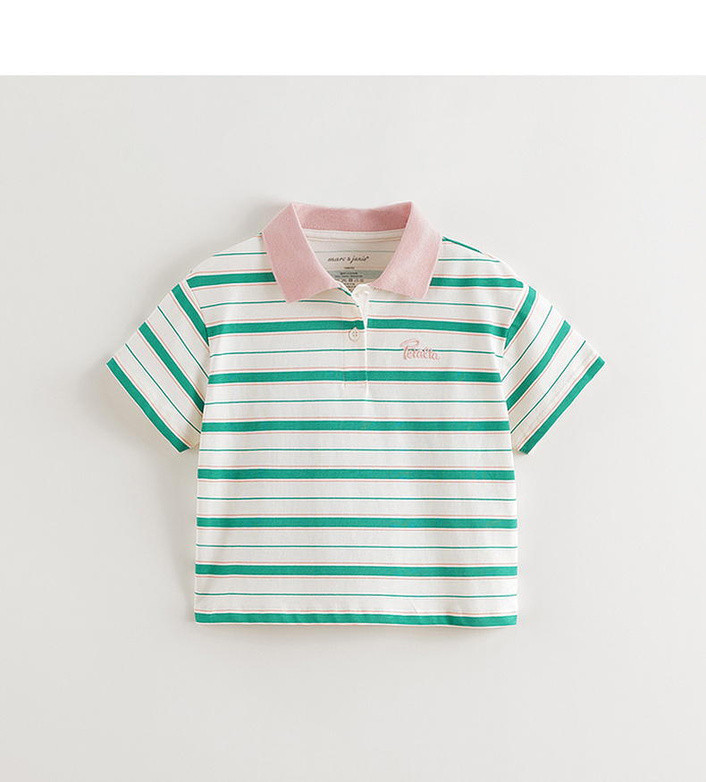 马克珍妮女童元气条纹短袖polo衫 儿童运动T恤2025夏装新款550691