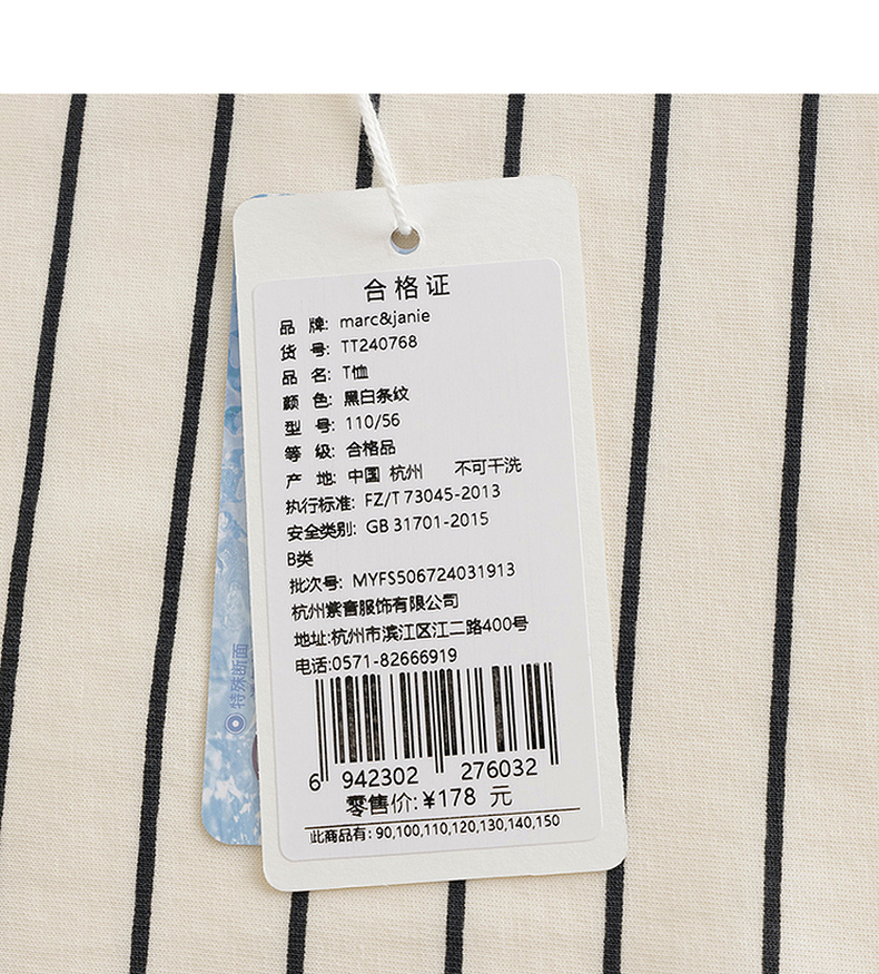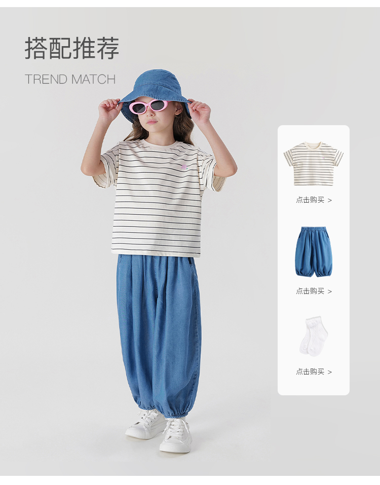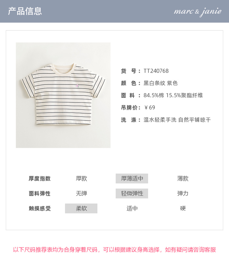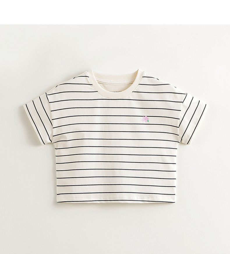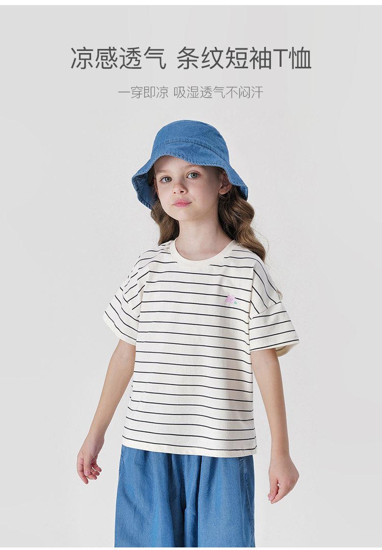 【凉感透气】马克珍妮女童圆领条纹短袖T恤2024年夏装新款240768