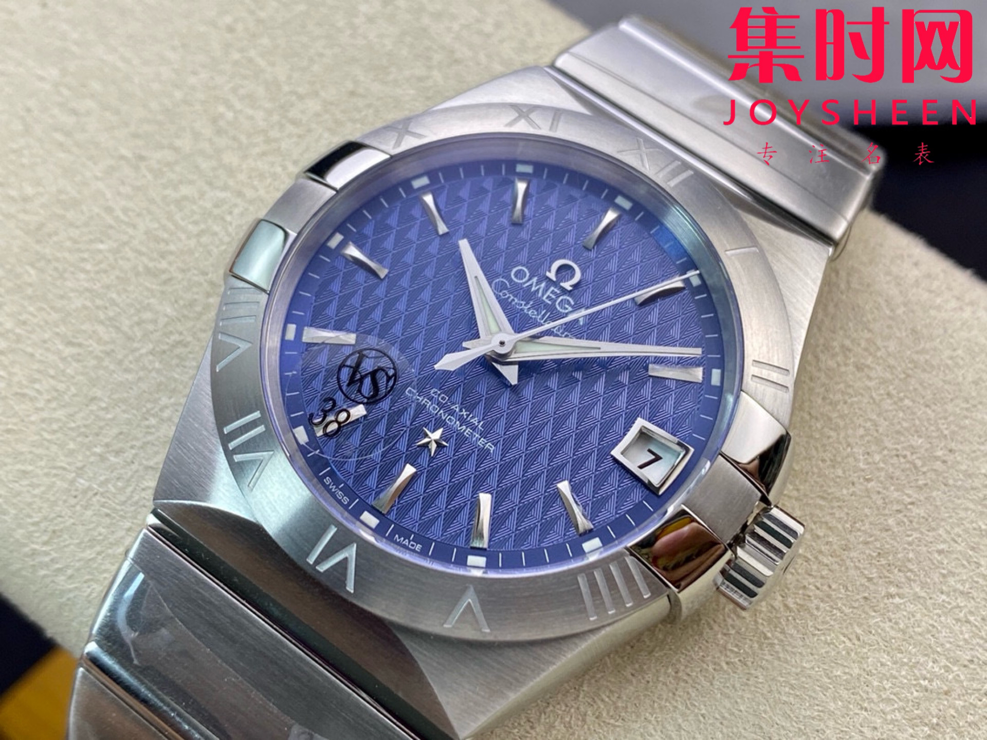 欧米茄 VS第四代星座系列 格子面蓝盘 男士腕表 丹东8500一体机 表径38mm