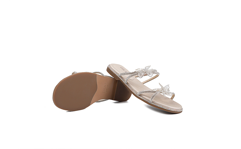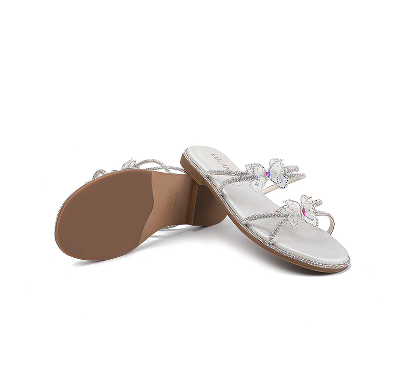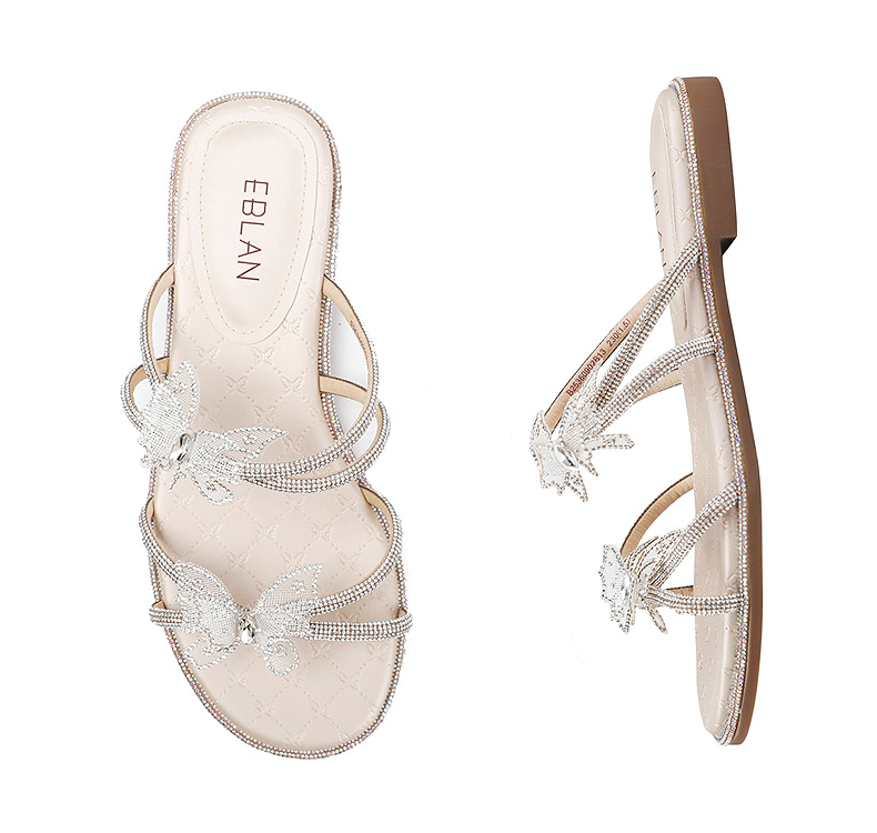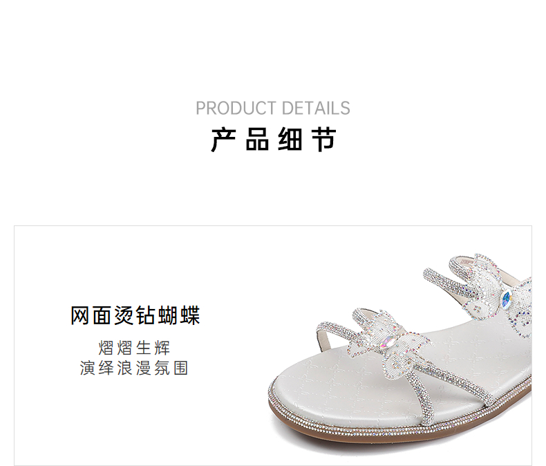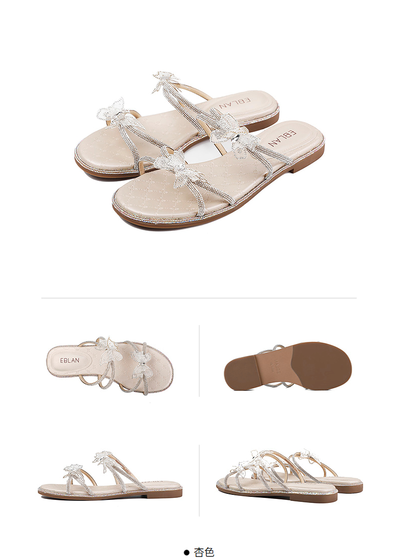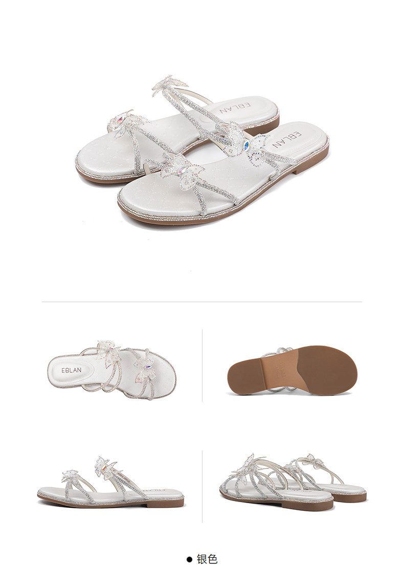 2楼伊伴2025年夏季网面烫钻蝴蝶星光钻带凉鞋B25360902