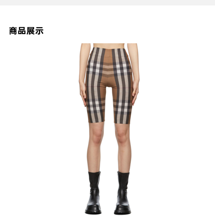 BURBERRY 巴宝莉 女士格纹印花弹力平纹针织骑行短裤 棕色红条大格子 8043426 A8894
