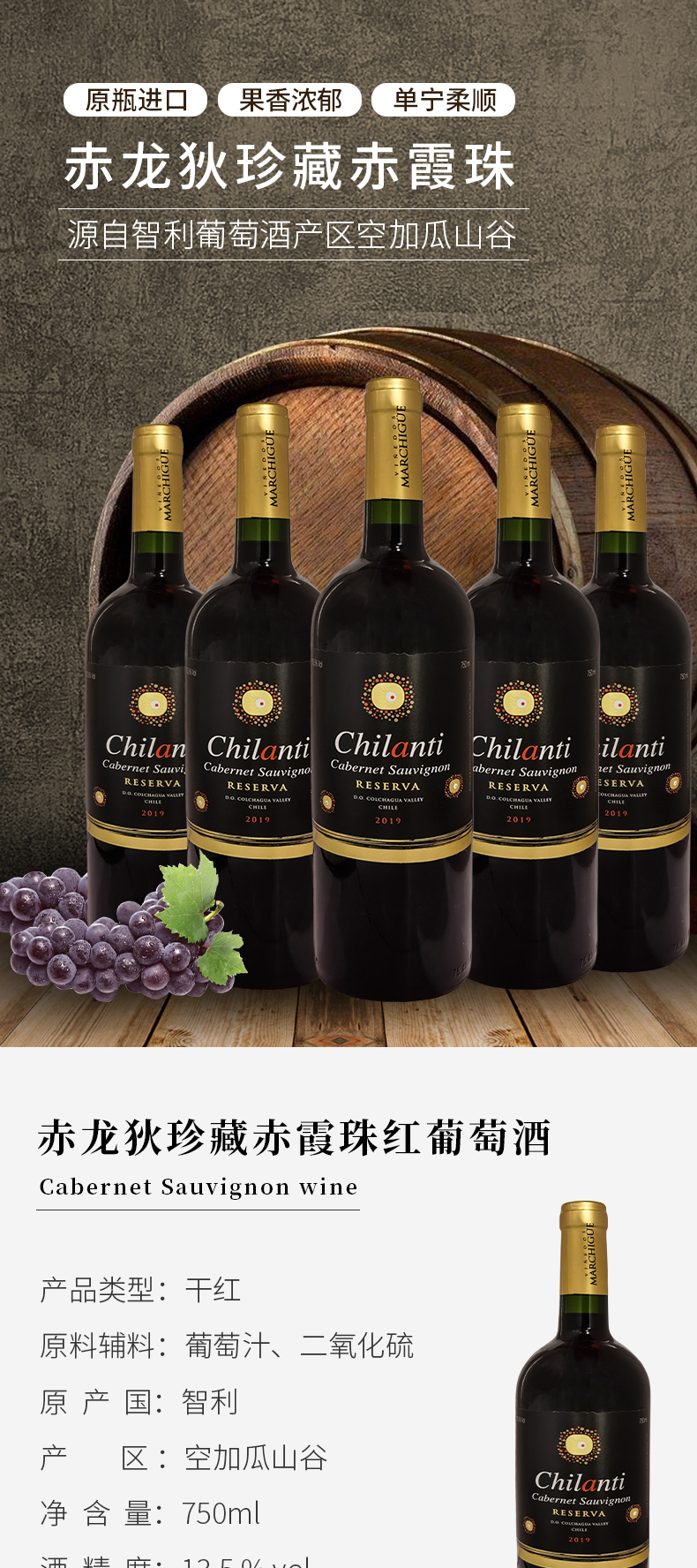 智利进口赤龙狄珍藏赤霞珠干红葡萄酒750ml