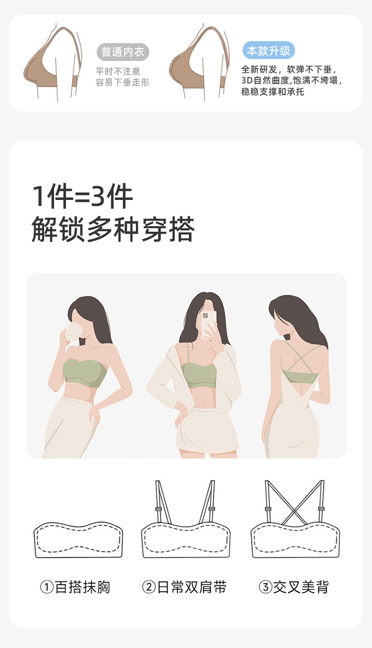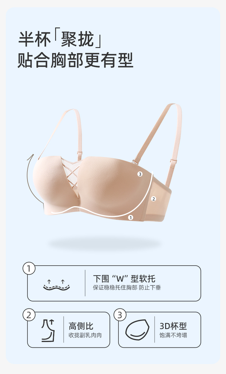 【商场同款】熳洁儿 无肩带内衣小胸聚拢1/2杯抹胸光面夏季百搭防滑上托22201562