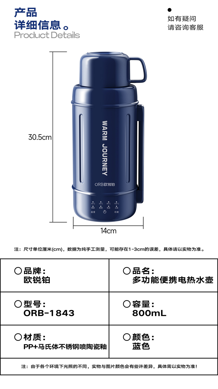 欧锐铂旅伴一号-多功能便携电热水壶ORB-1843