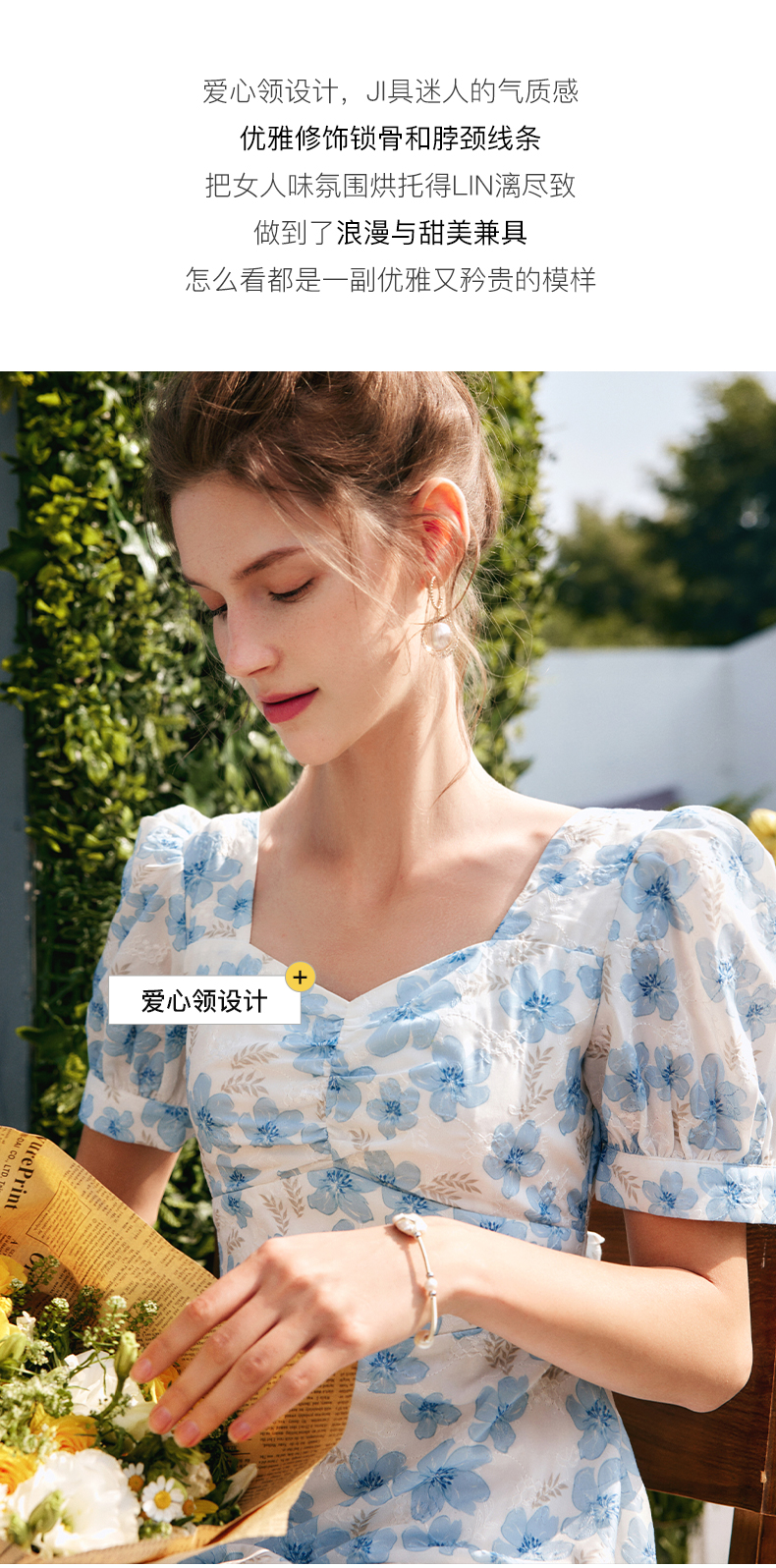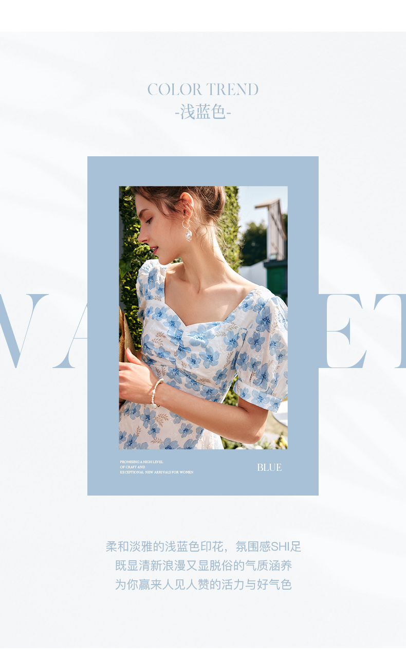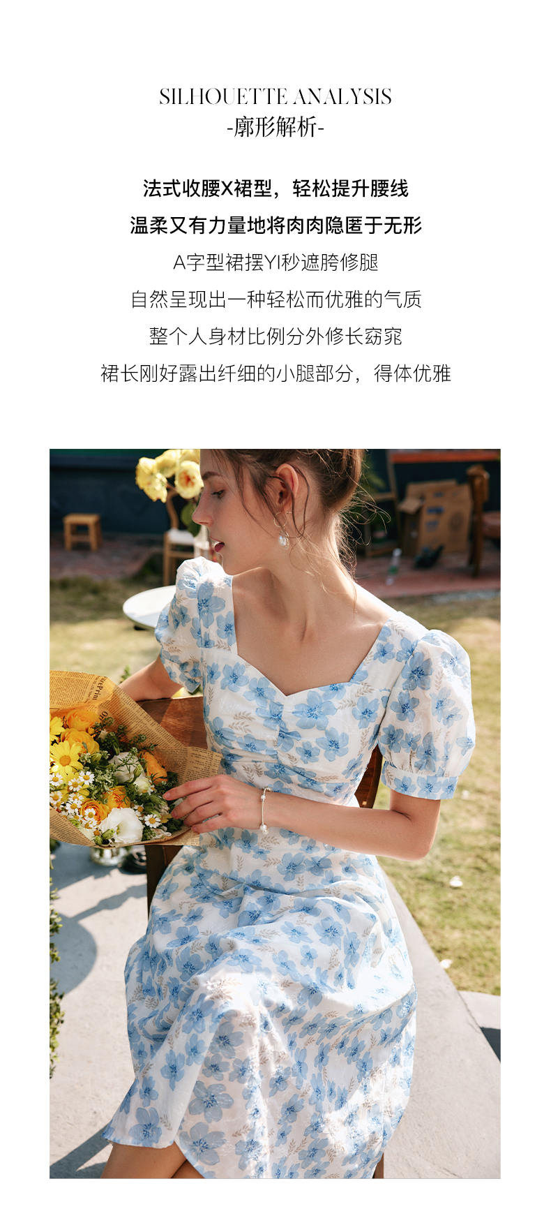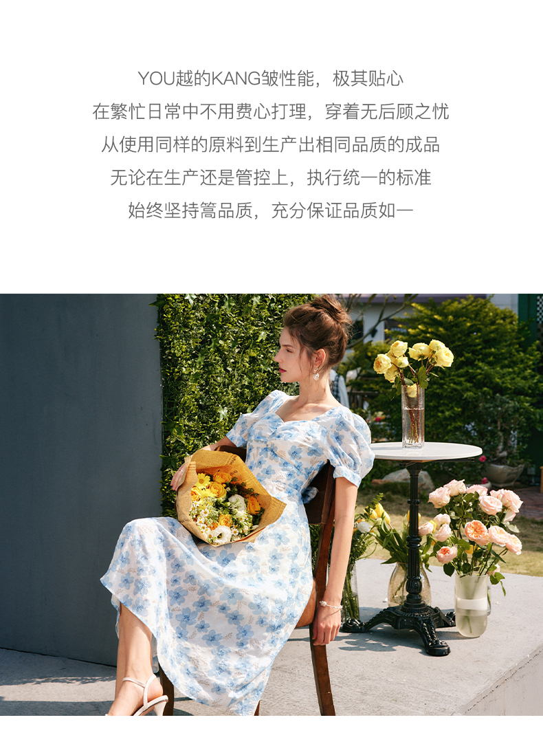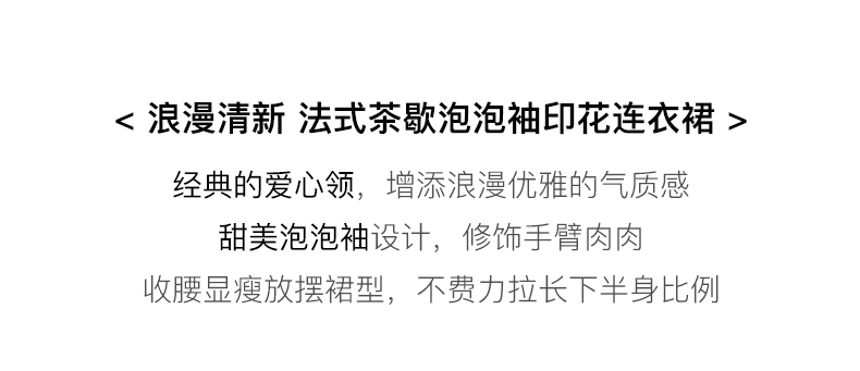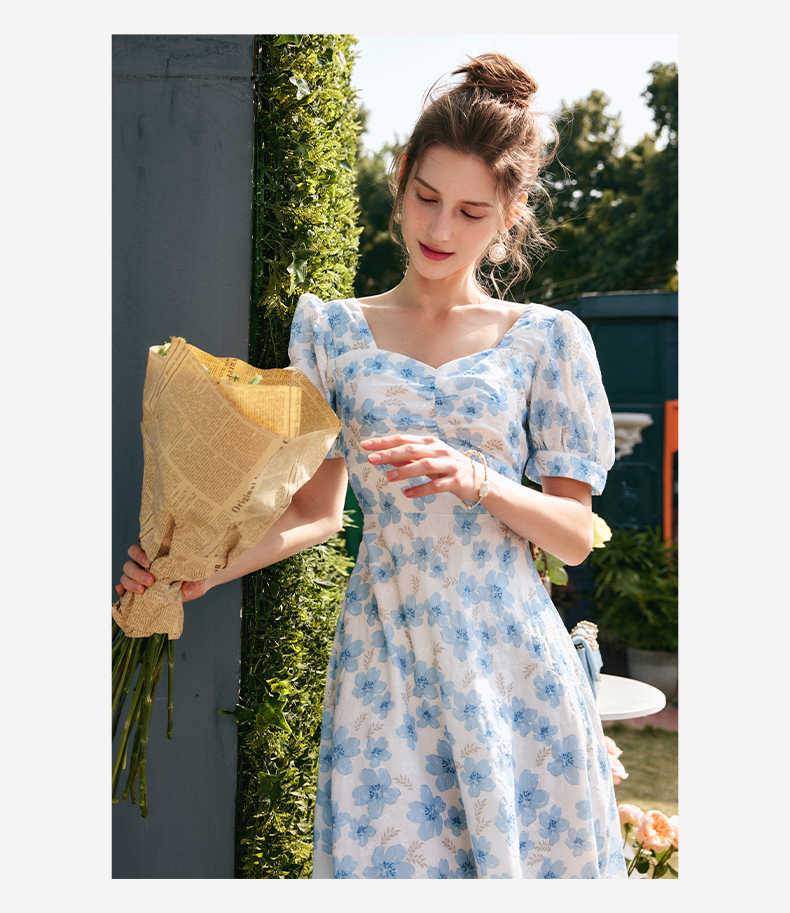 欧芮儿碎花连衣裙女夏季2022年新款收腰时尚法式方领泡泡袖茶歇裙