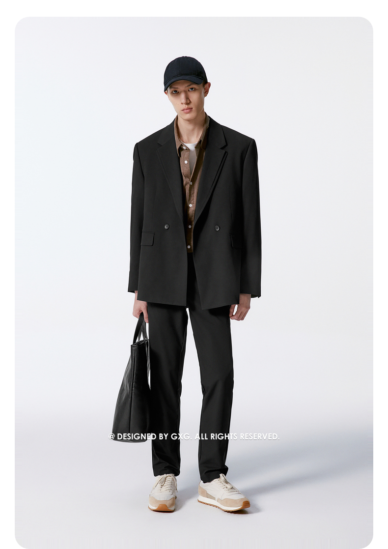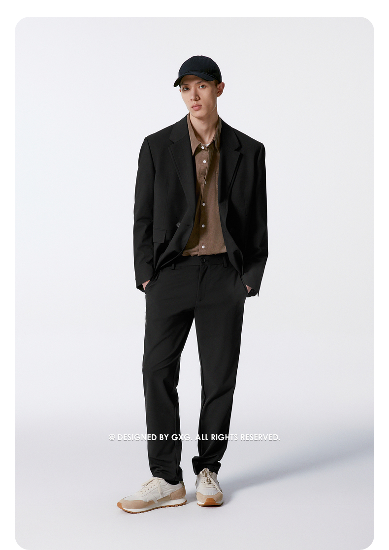 GXG男装 黑色垂感套西西裤宽松直筒裤 24年秋G24X143004