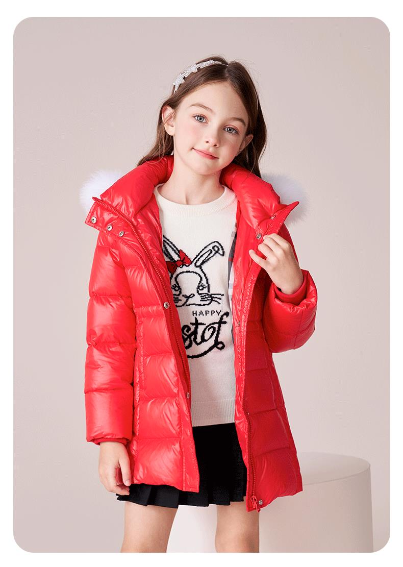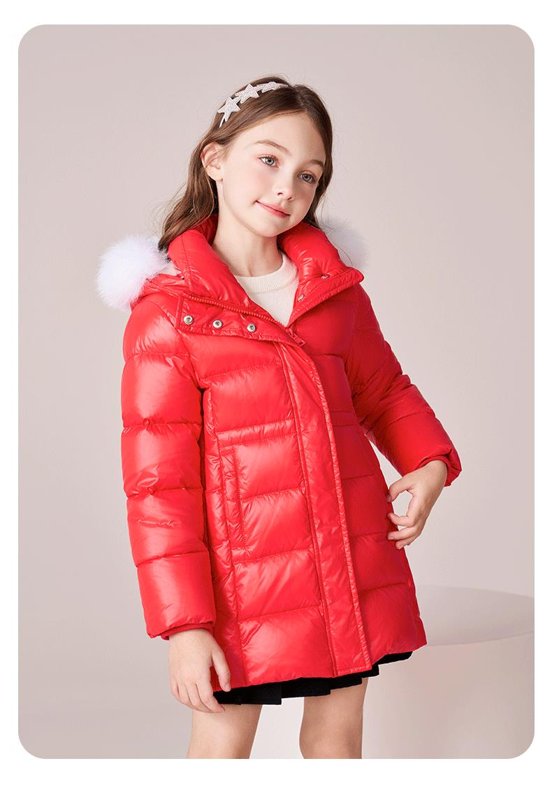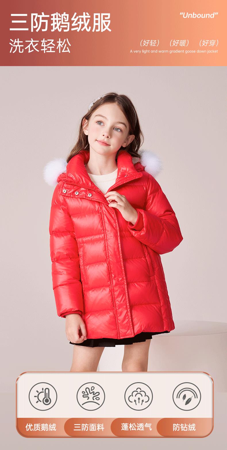 【三防】女童羽绒服2023秋冬新款90鹅绒加厚儿童长款保暖连帽外套